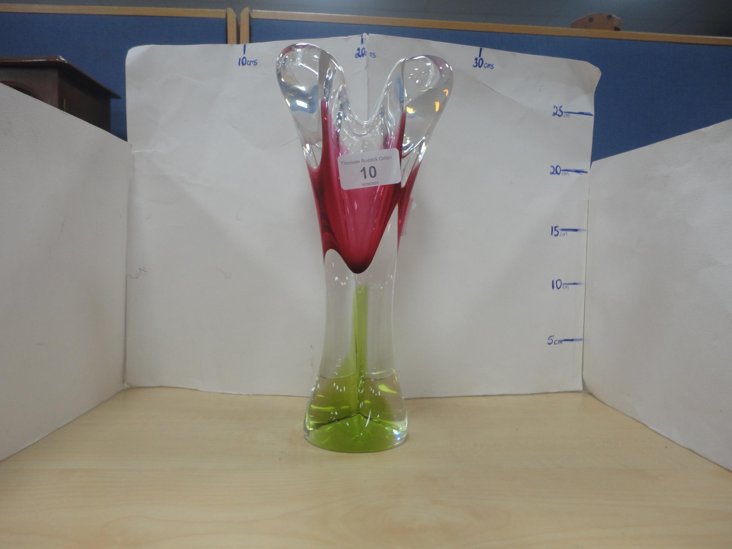 Murano style art glass vase with pink and green ground.
