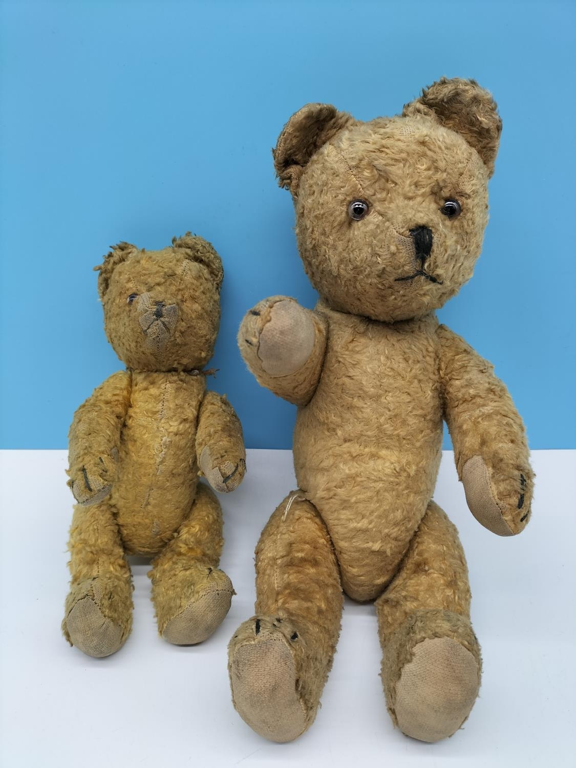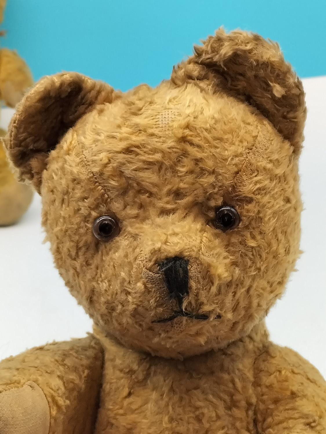 Vintage Straw Filled Jointed Teddy Bears (2). Tallest being 35cm.