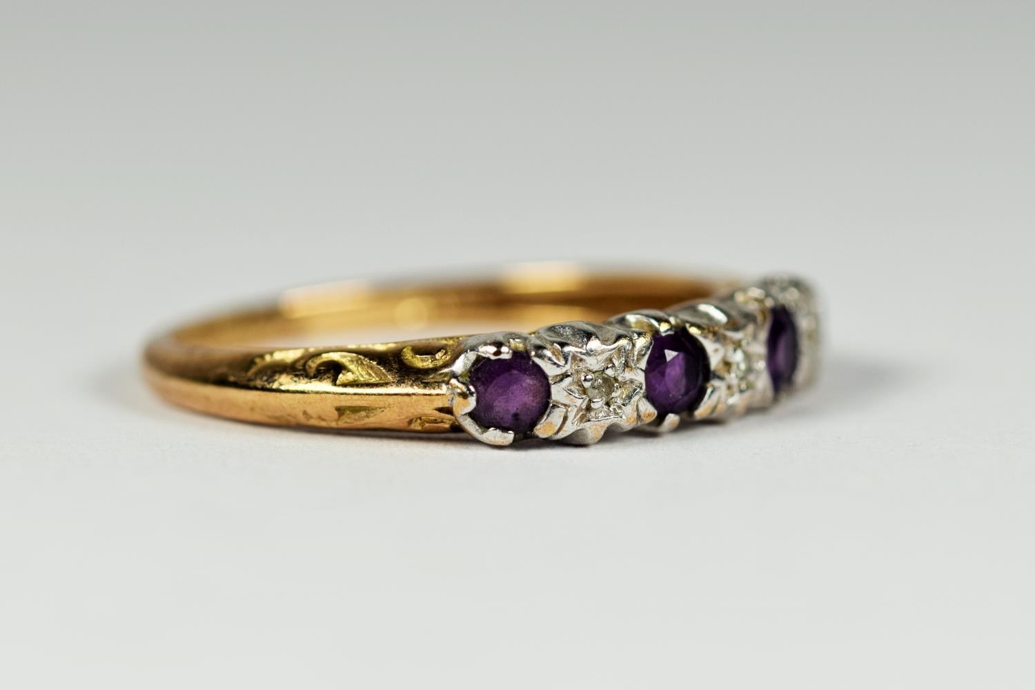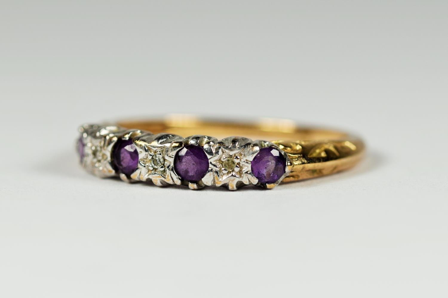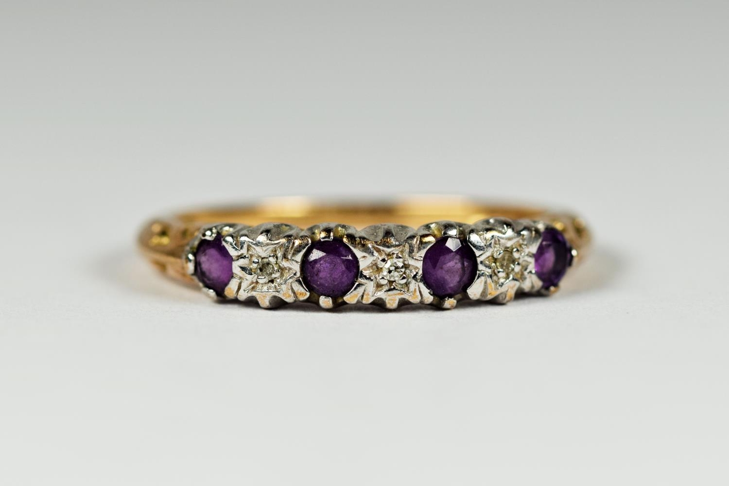 9ct gold amethyst & diamond gypsy setting ring (1.9g) 2030253
