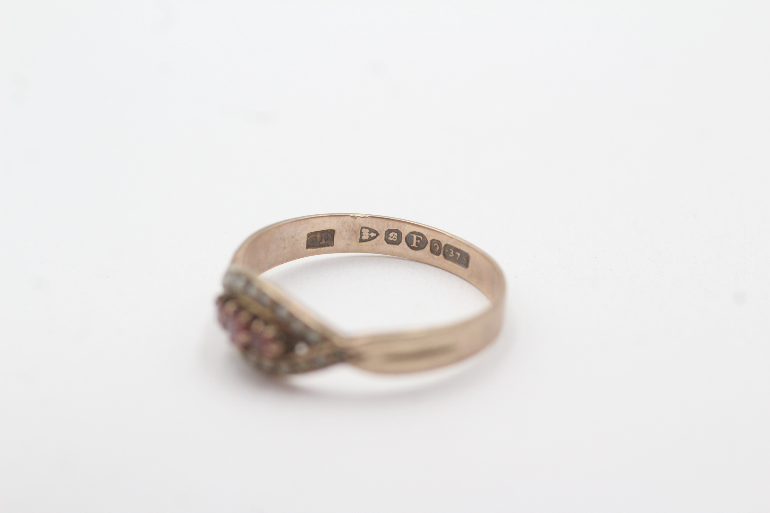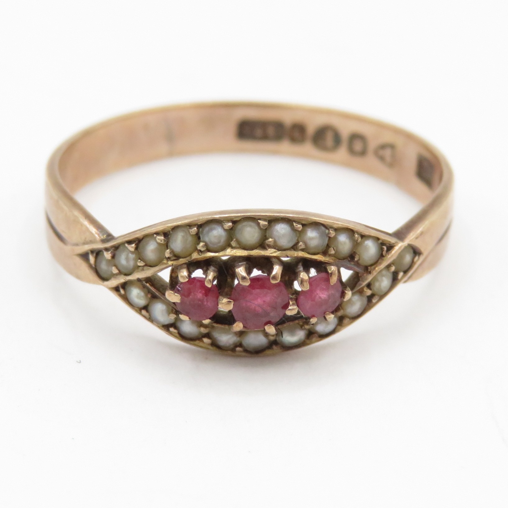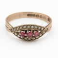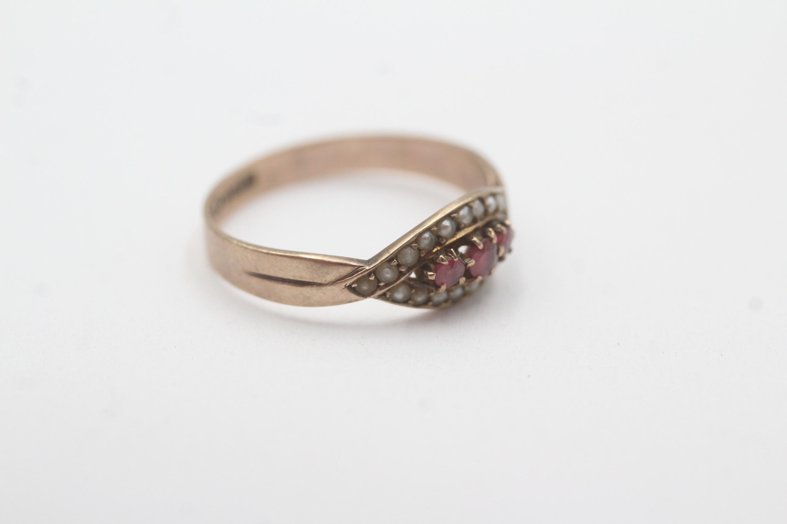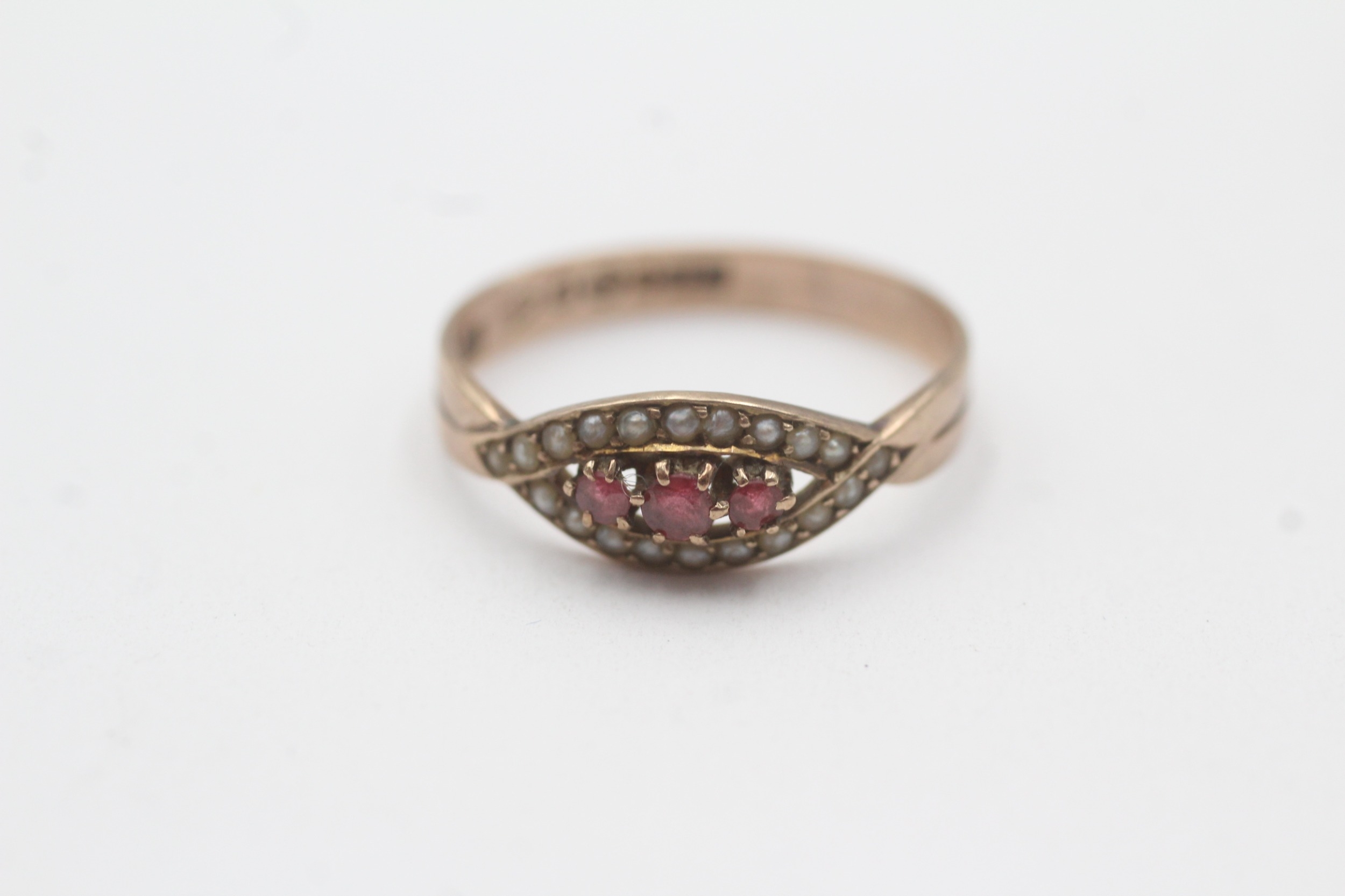 9ct gold red paste and split pearl ring (1.6g) Size O