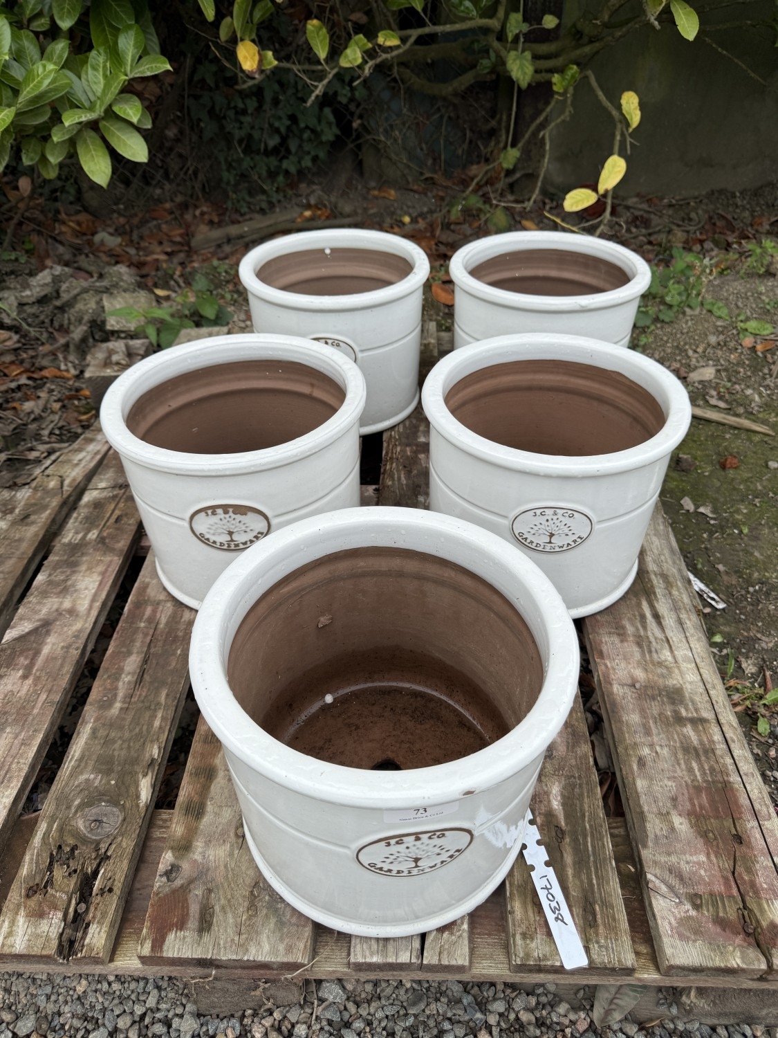 A set of five J.C.&Co. Gardenware salt glazed terracotta planters