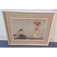 WILLIAM RUSSELL FLINT CASILDA'S WHITE PETTICOAT SIGNED IN PENCIL & BLIND STAMP FRAMED PRINT 45 X 61 CM