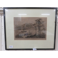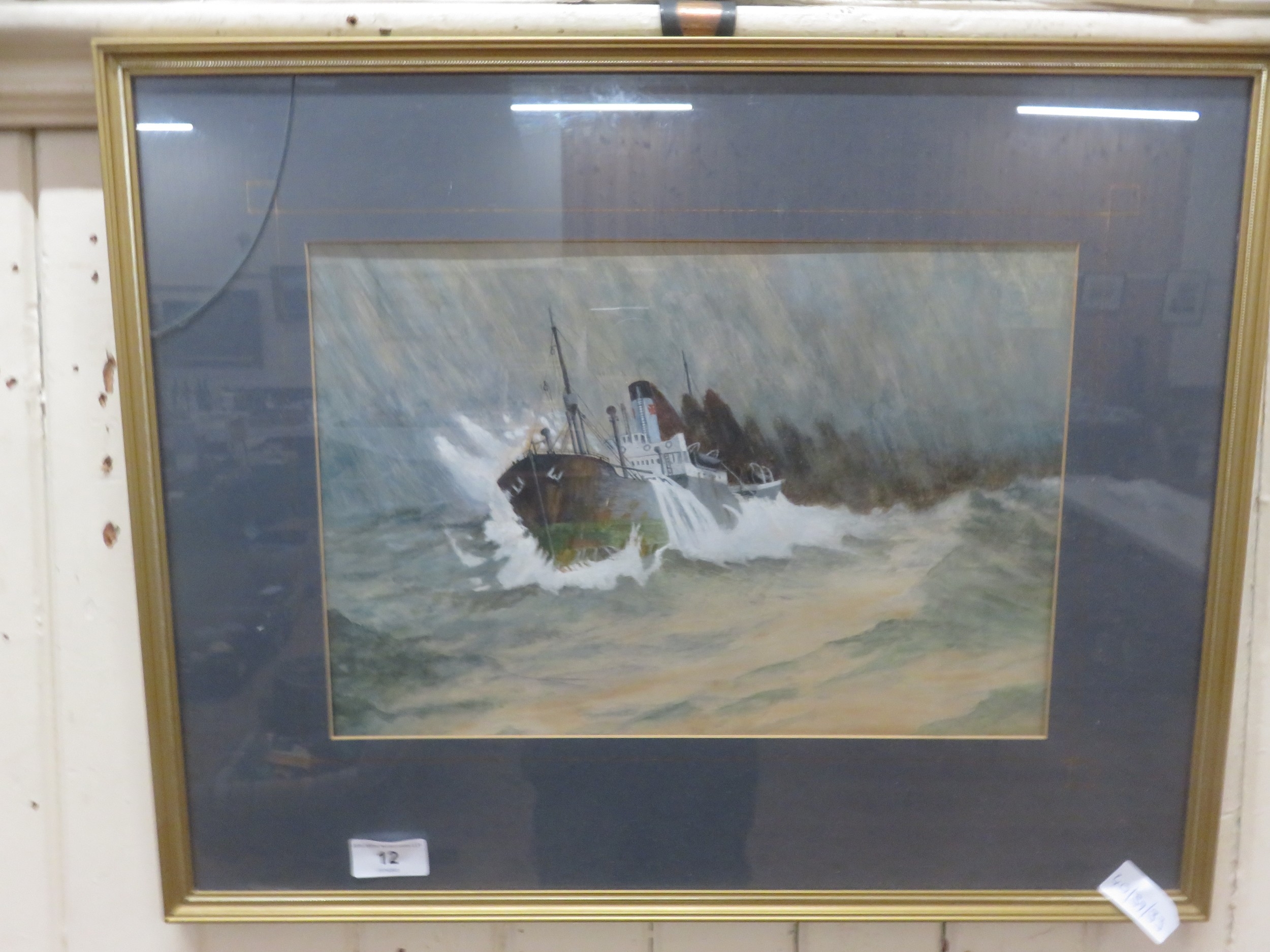 Framed Watercolour - Ship in Stormy Seas