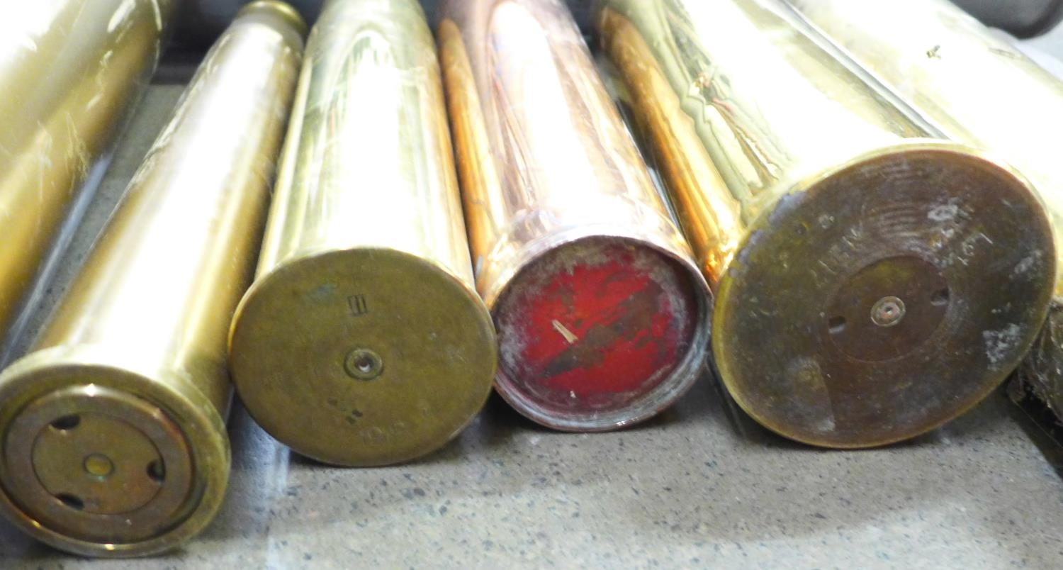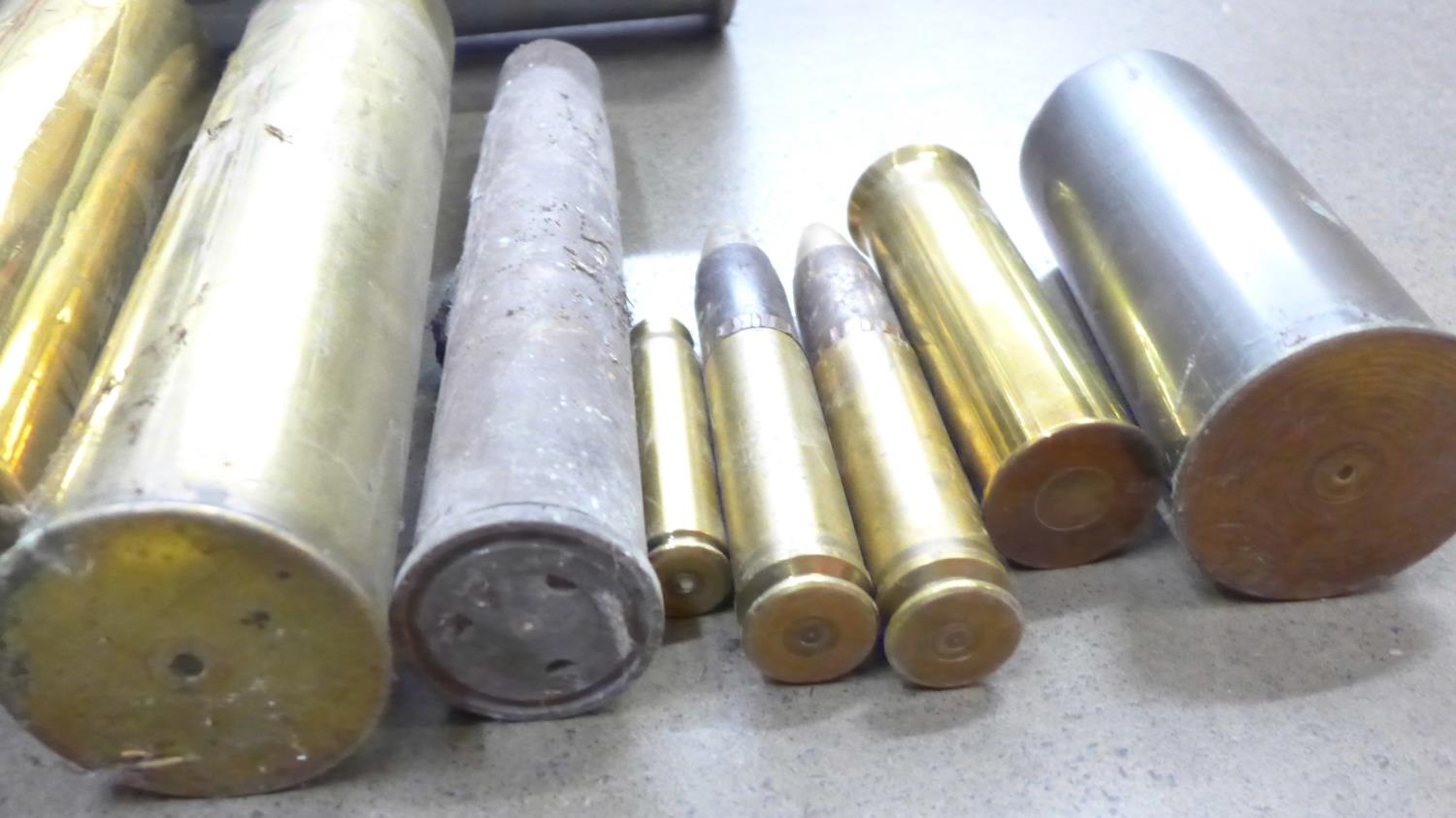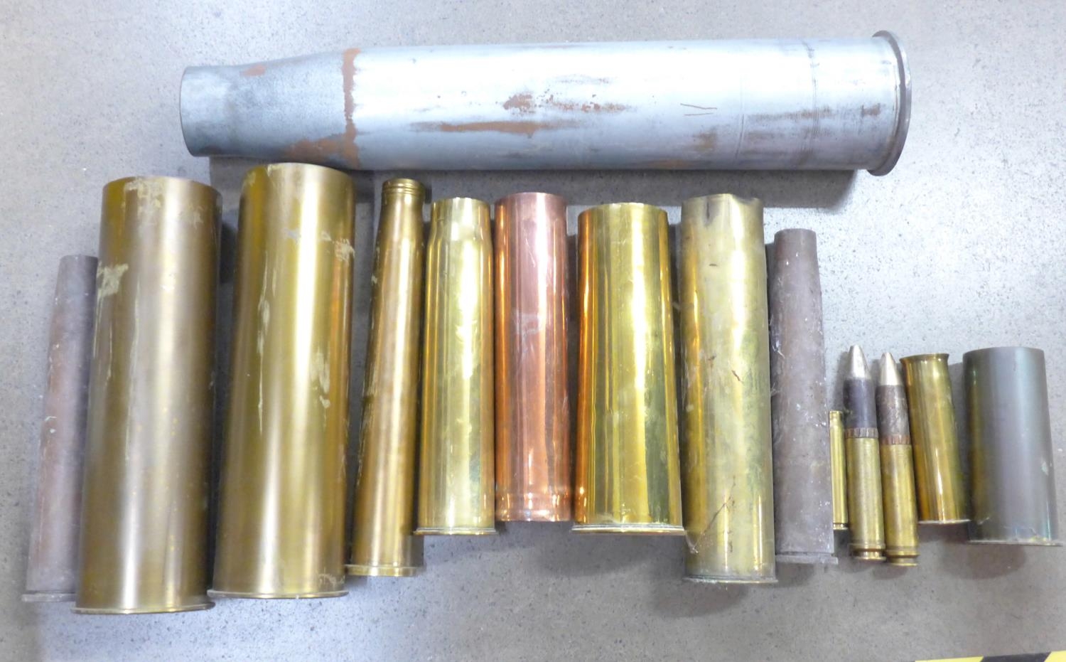 A collection of brass and steel shell casings