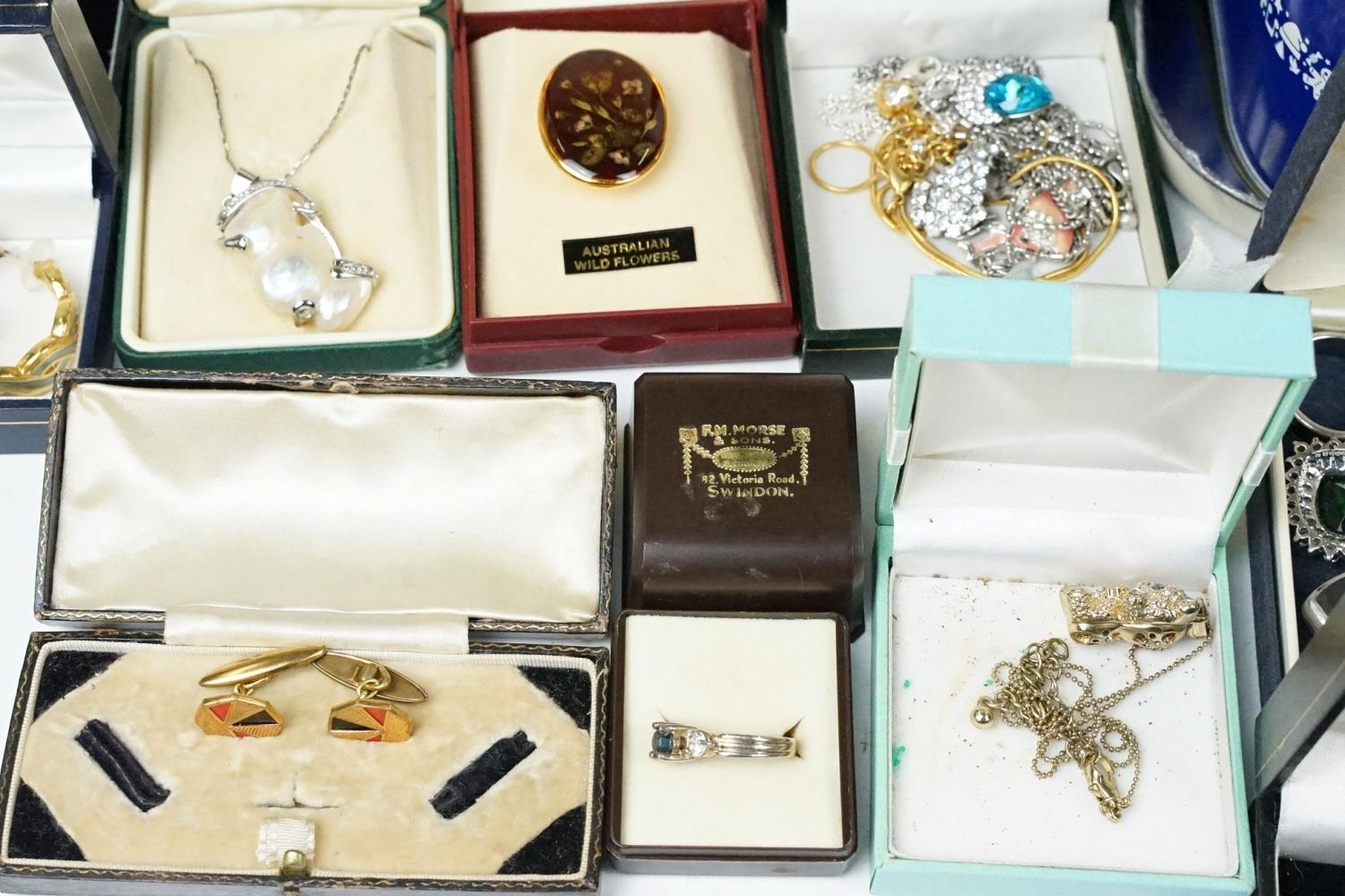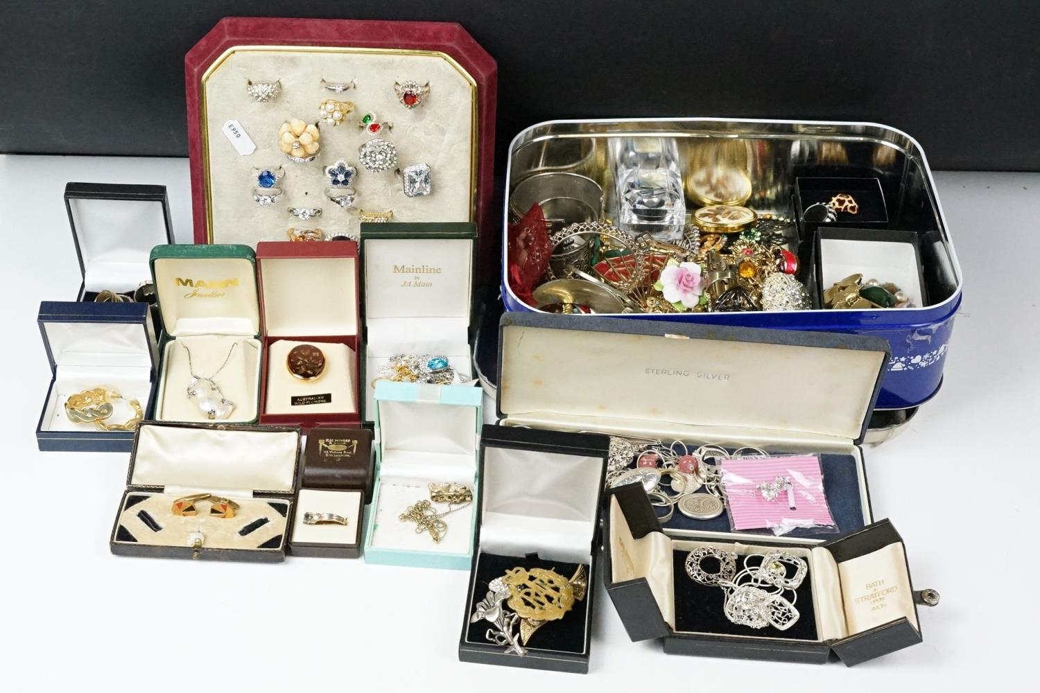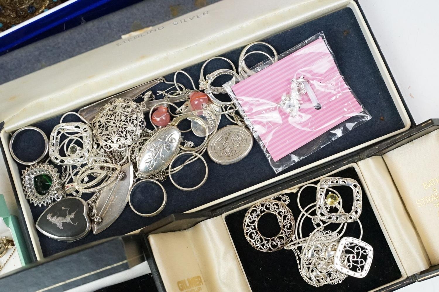 A collection of silver jewellery together with a quantity of costume jewellery.