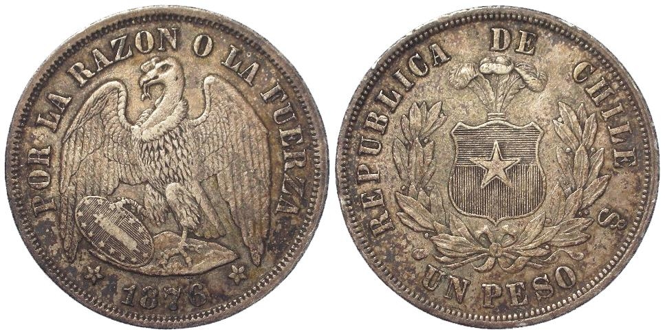 Chile silver Peso 1876 toned GVF