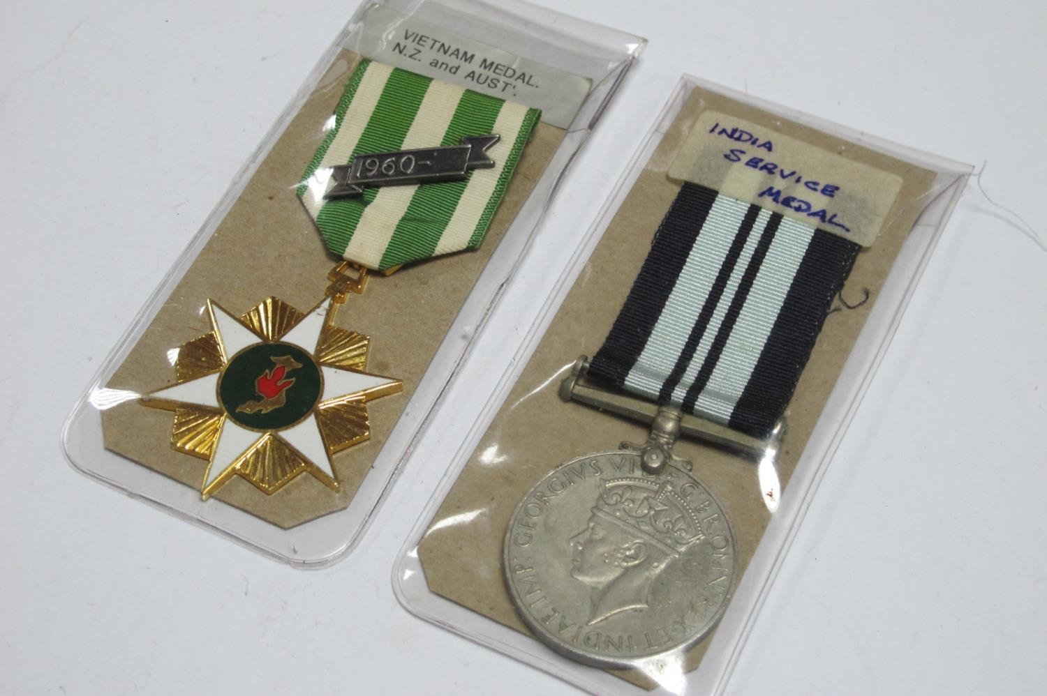A George VI India Service Medal and a Vietnam Campaign Medal.
