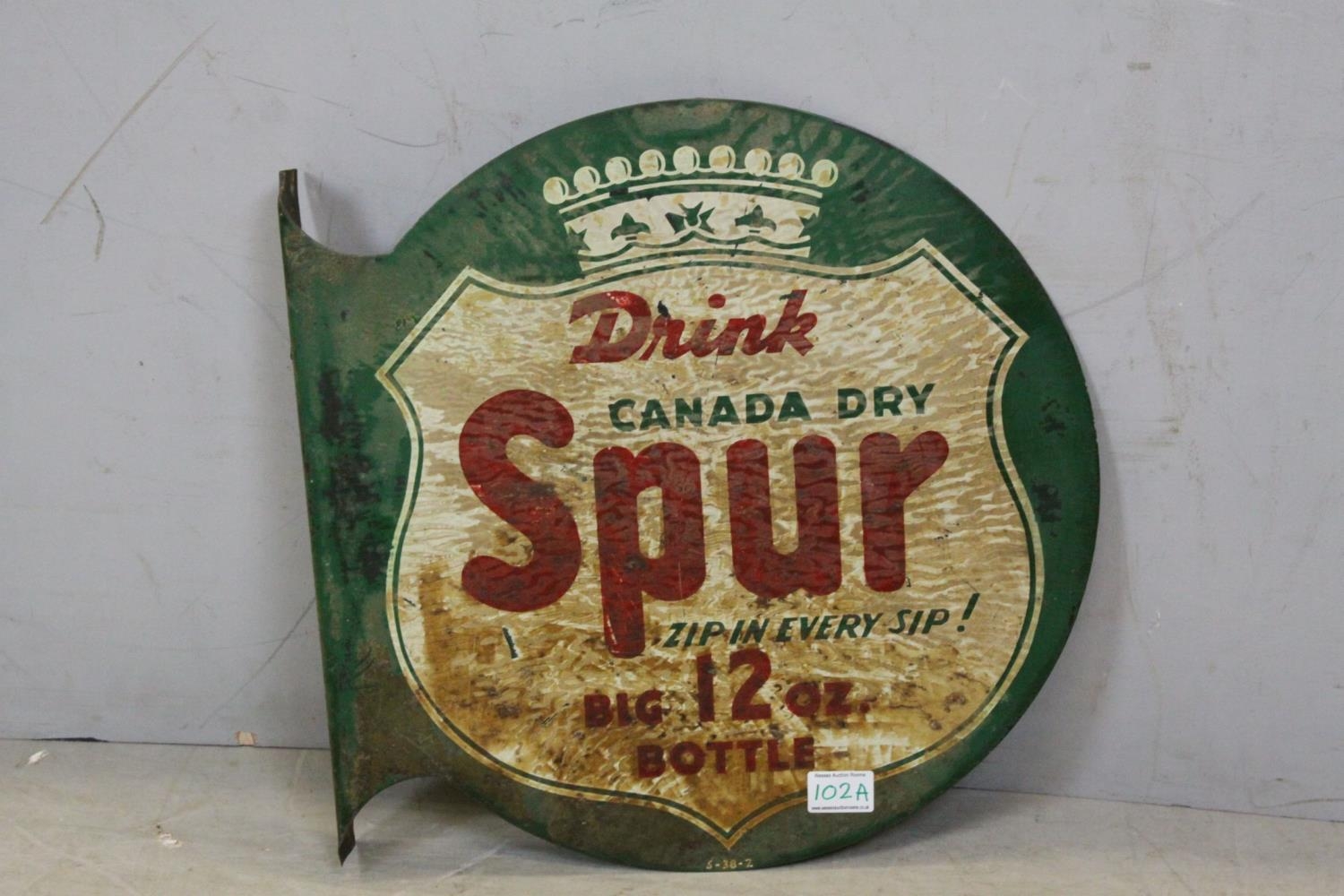 Vintage American Enamel Double Sided Advertising ' Canada Dry Spur ', 45cms high