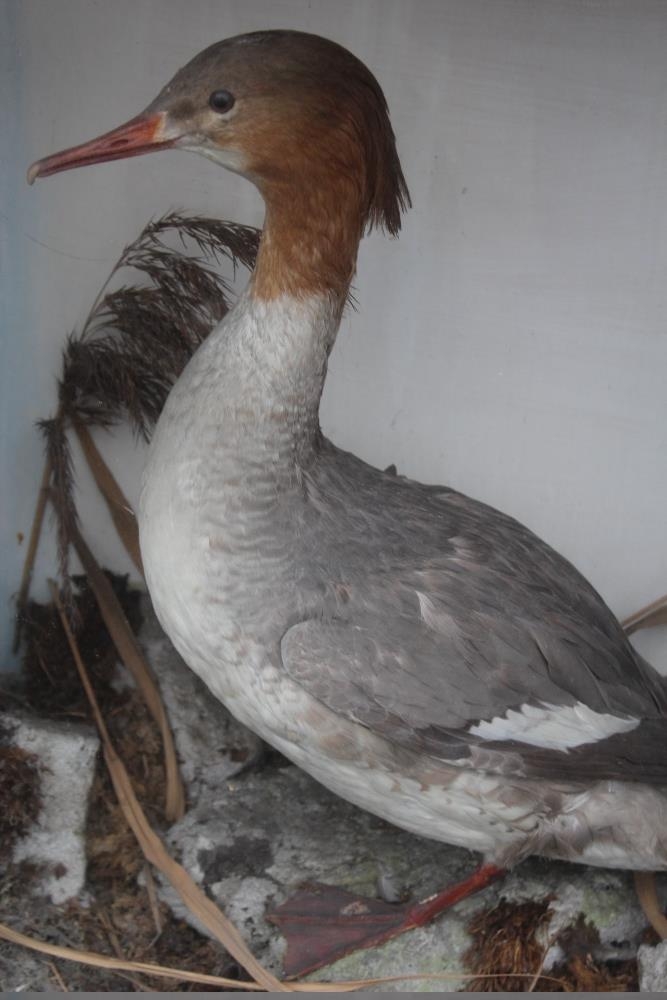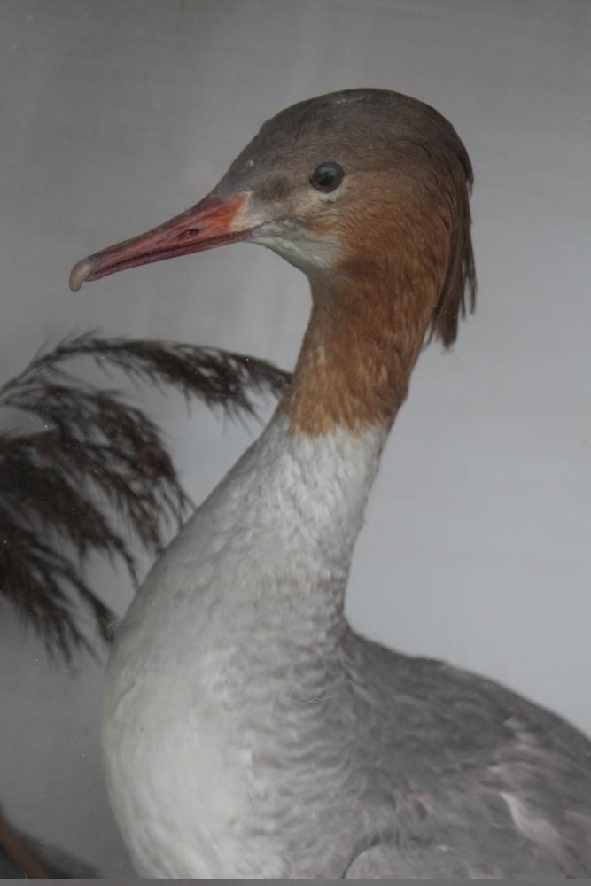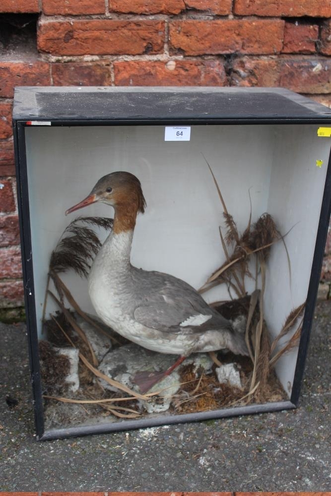 TAXIDERMY - A CASED STUDY OF A THIN BEAKED WATER BIRD ON NATURALISTIC BASE, W 51 cm, D 25 cm