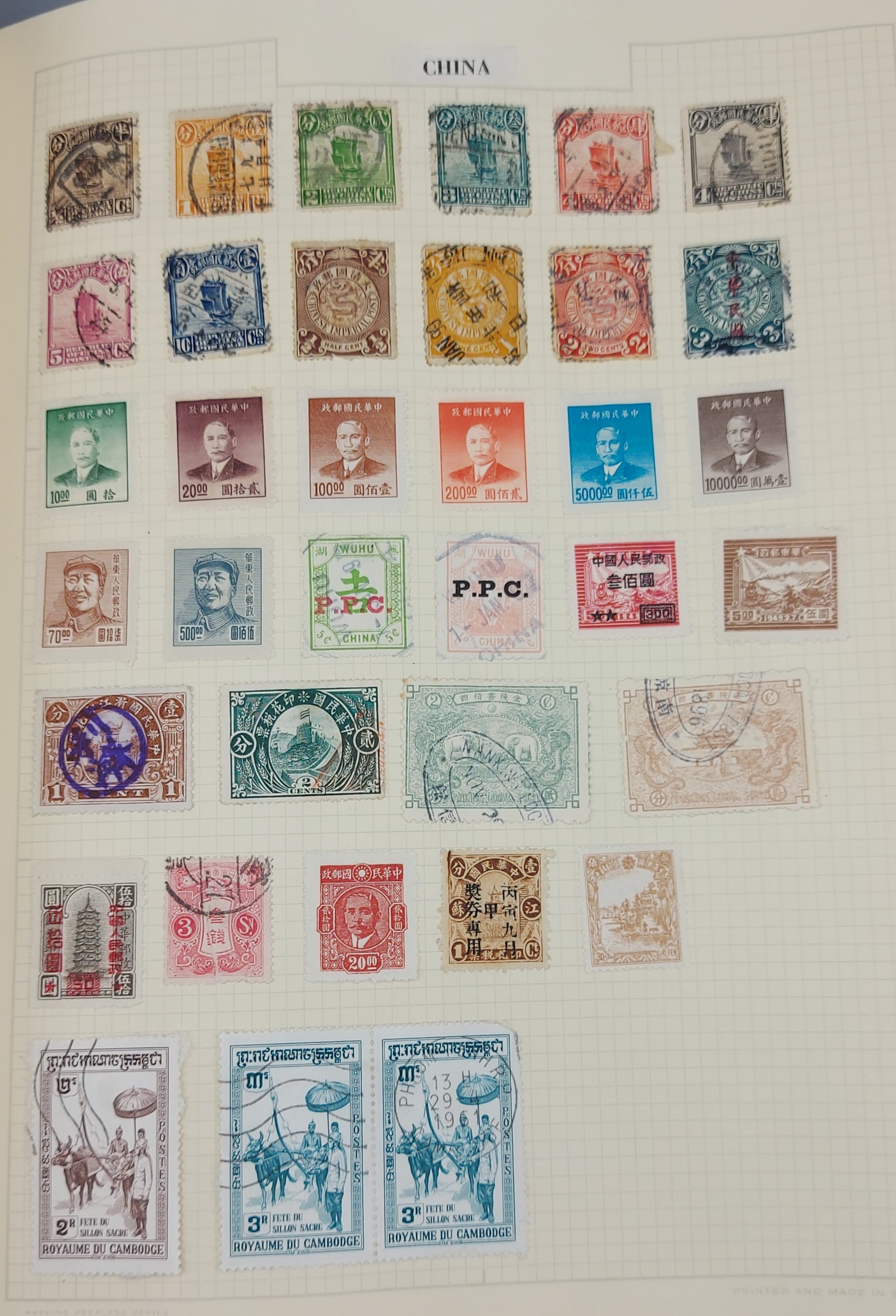 A stamp album containing stamps of the world to include GB and china, both mint and used