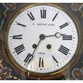 French wall clock with serpentine shaped frame, circular brass framed enamel dial, foliate decoration, stamped 'F Bitton Aine Sens'