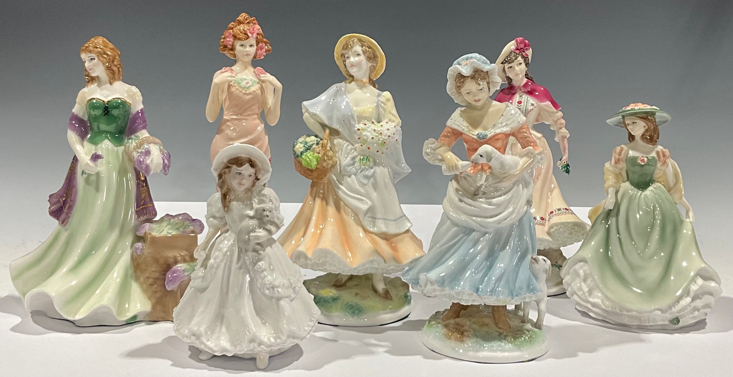 A Royal Worcester figure, for Compton & Woodhouse, The Shepherdess, limited edition 2,125/9,500; others, Lavender, Street Sellers; Market Day, limited edition 1,632/5,000; Hannah, Les Petites; Noelle, limited edition 759/9,500; Rose, Past Times exclusive, 93/500; Lucy, Collectors Society exclusive (7)