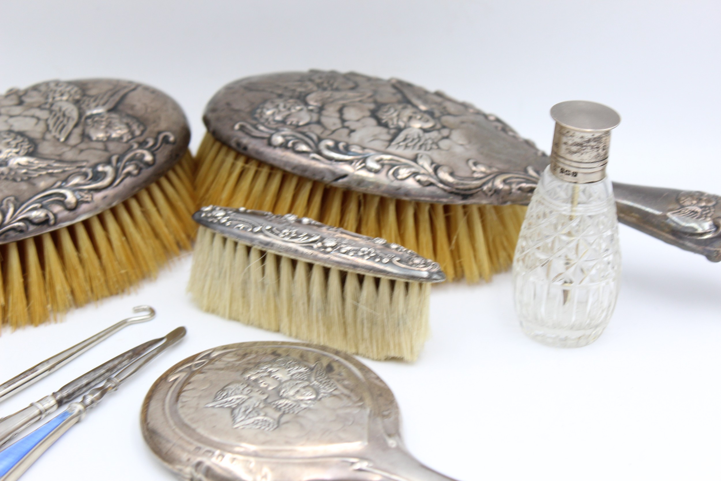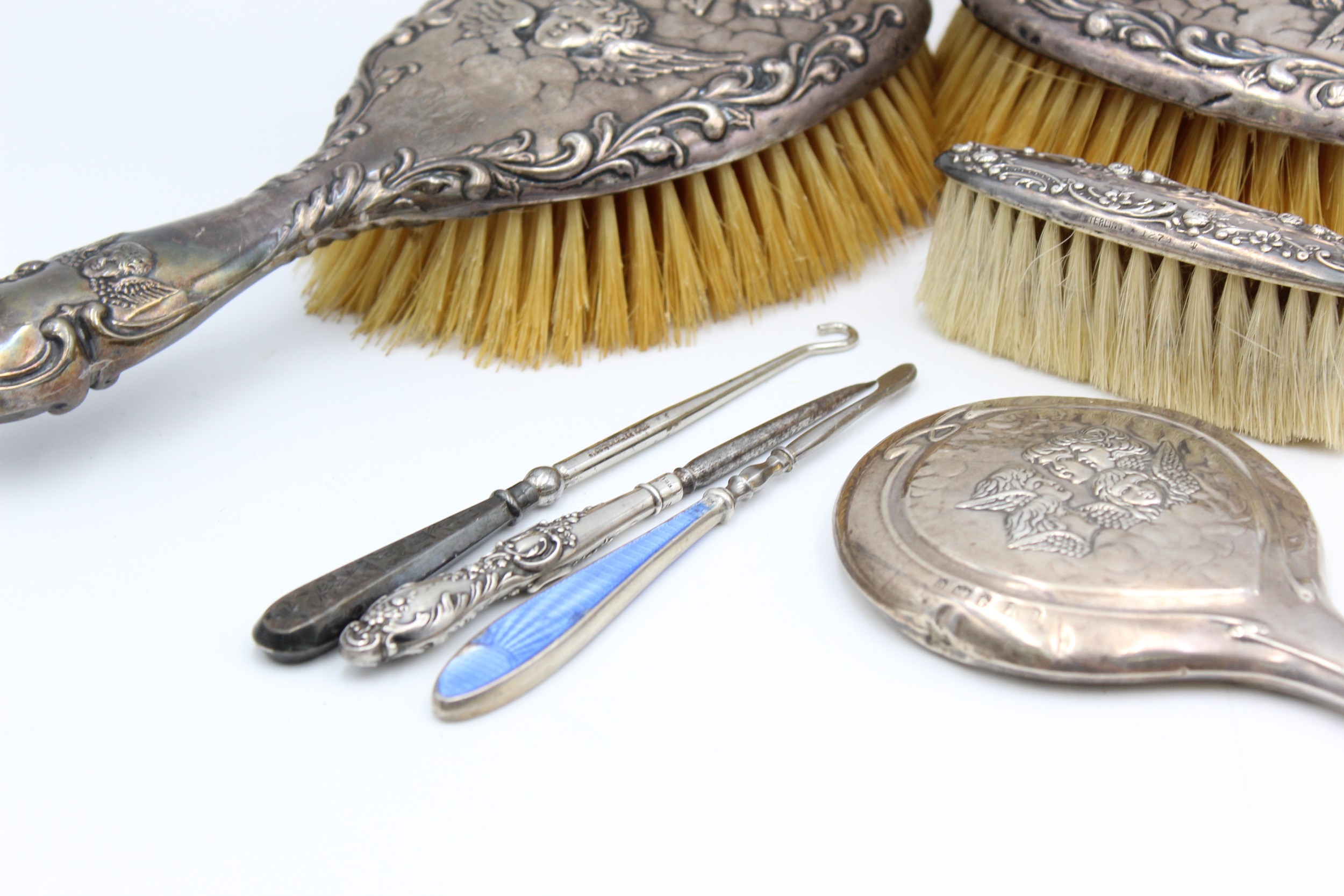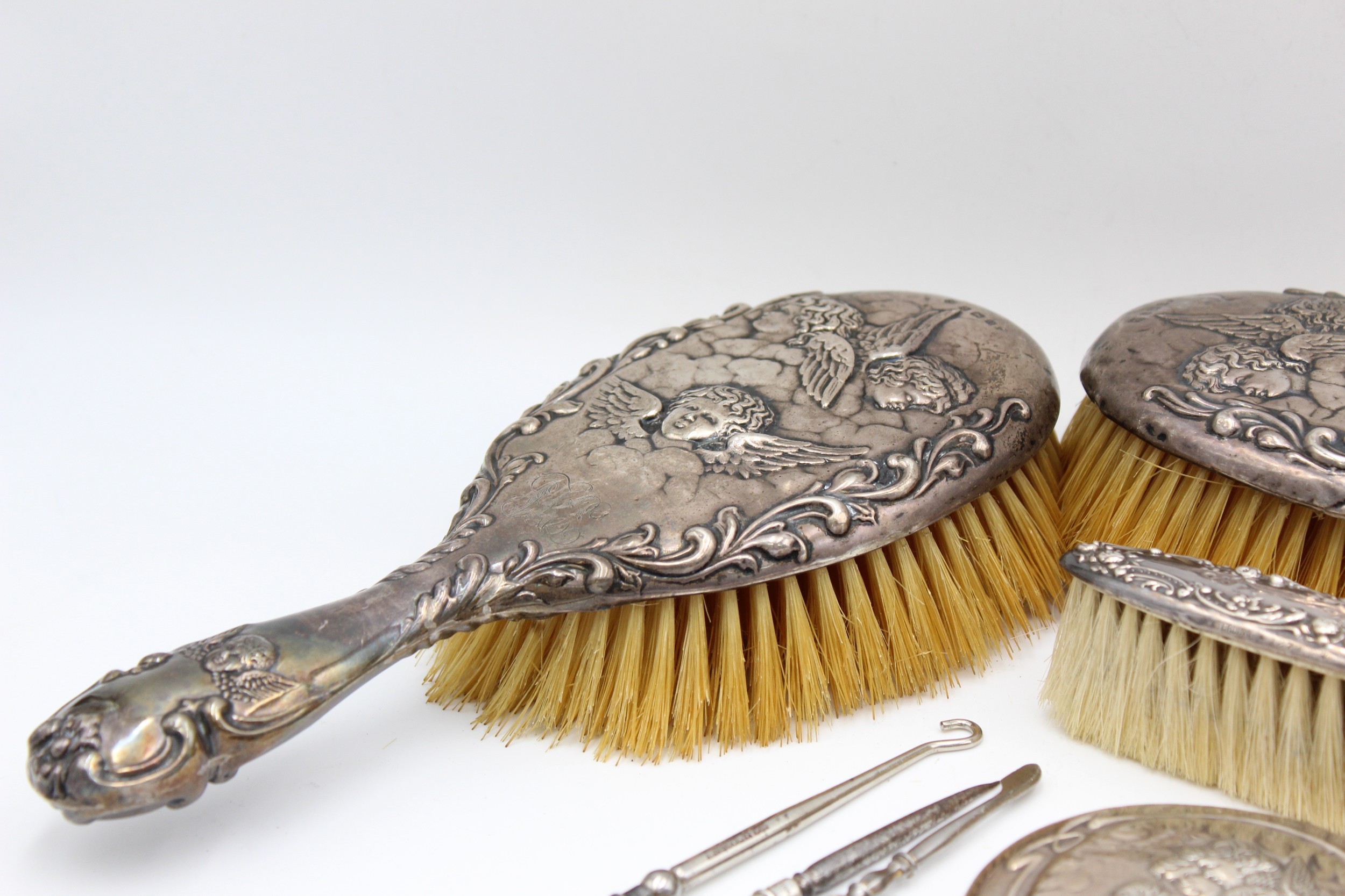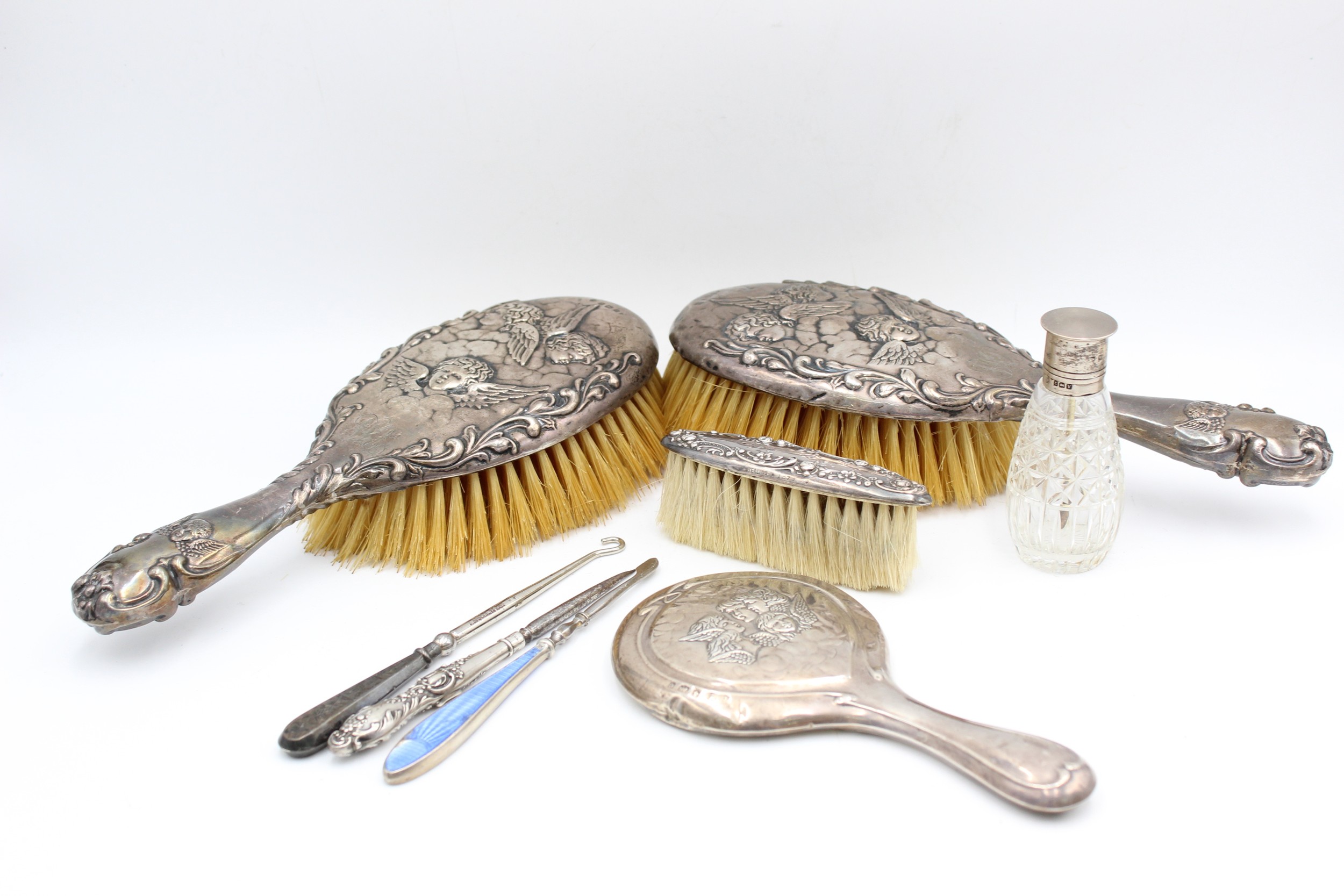 Inc Brushes, Mirror, Topped Dressing Table Jars Etc In antique / vintage condition Signs of use & age Please see photographs