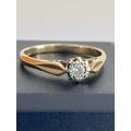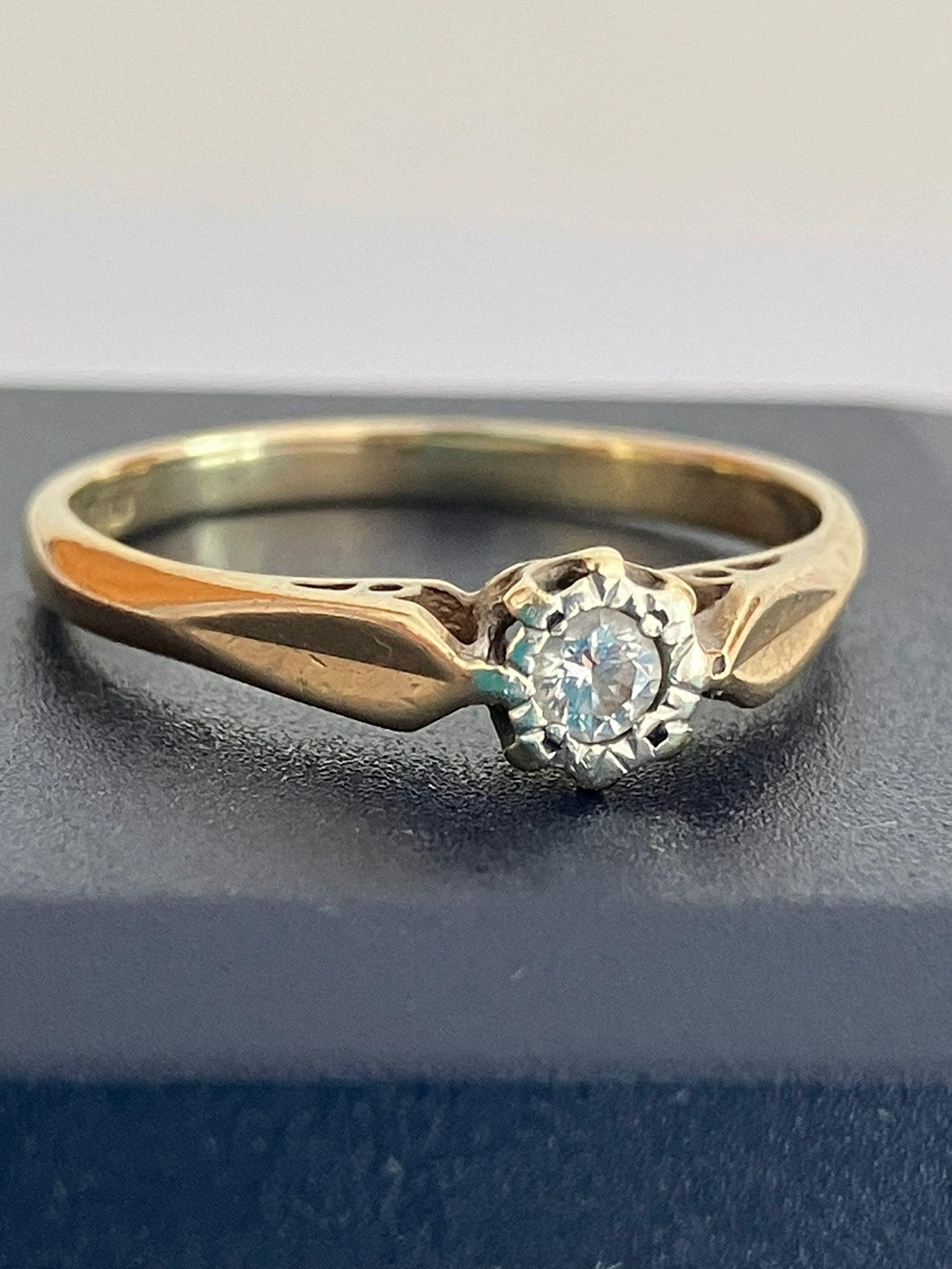 9 carat GOLD RING Having a single DIAMOND set to top. Full UK hallmark.1.49 grams. Size K 1/2.
