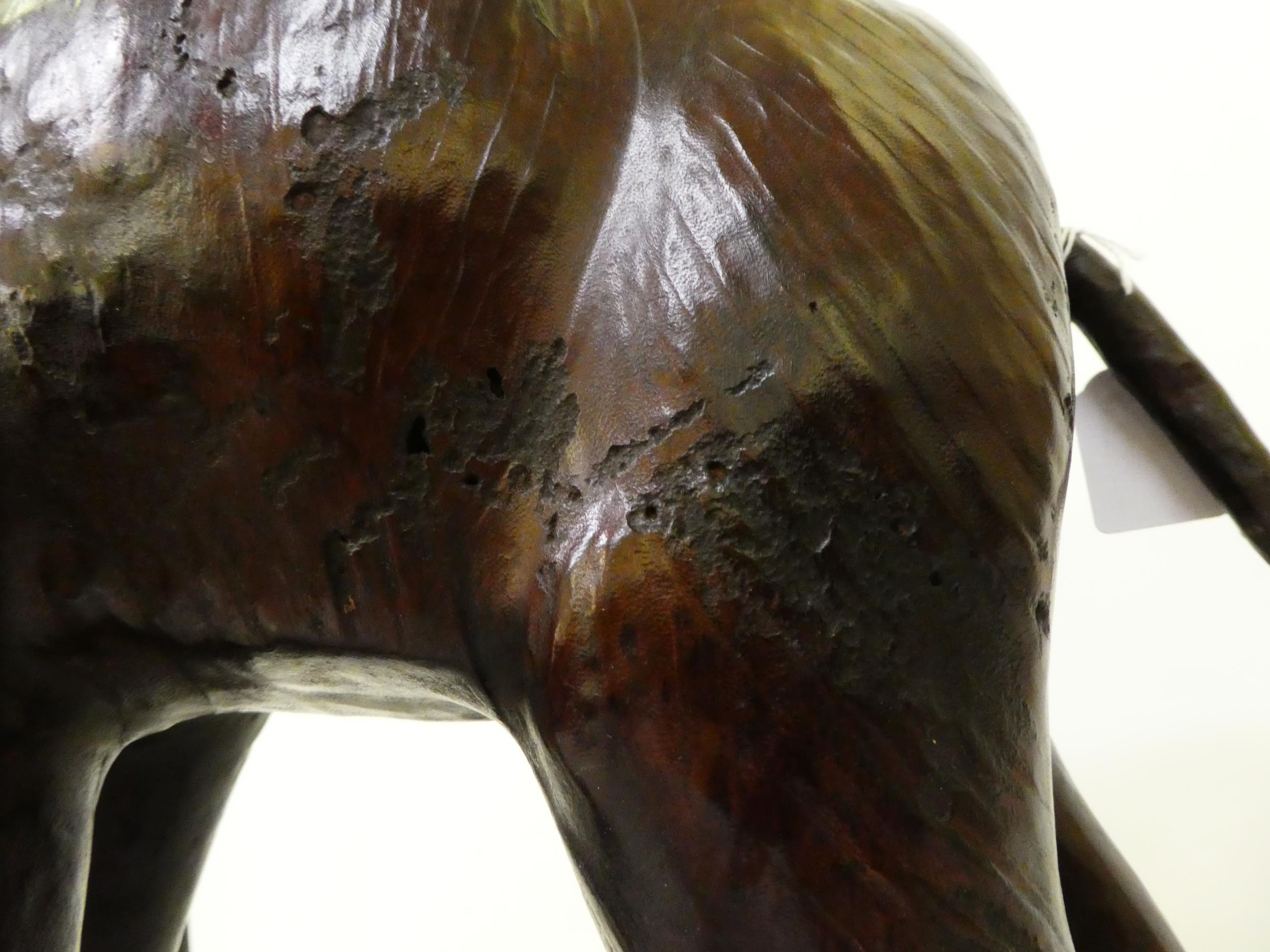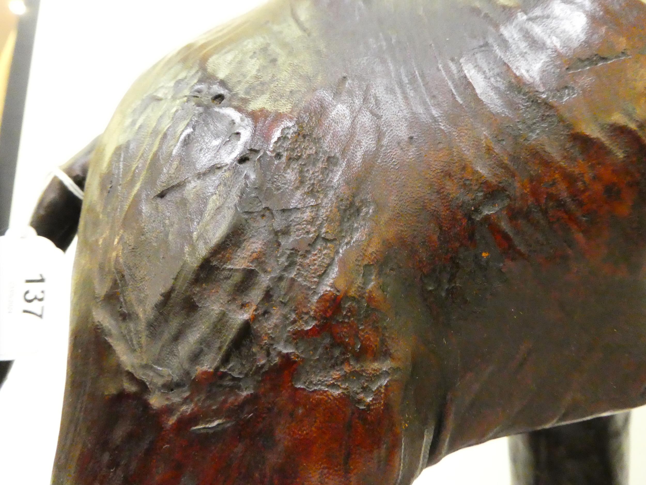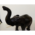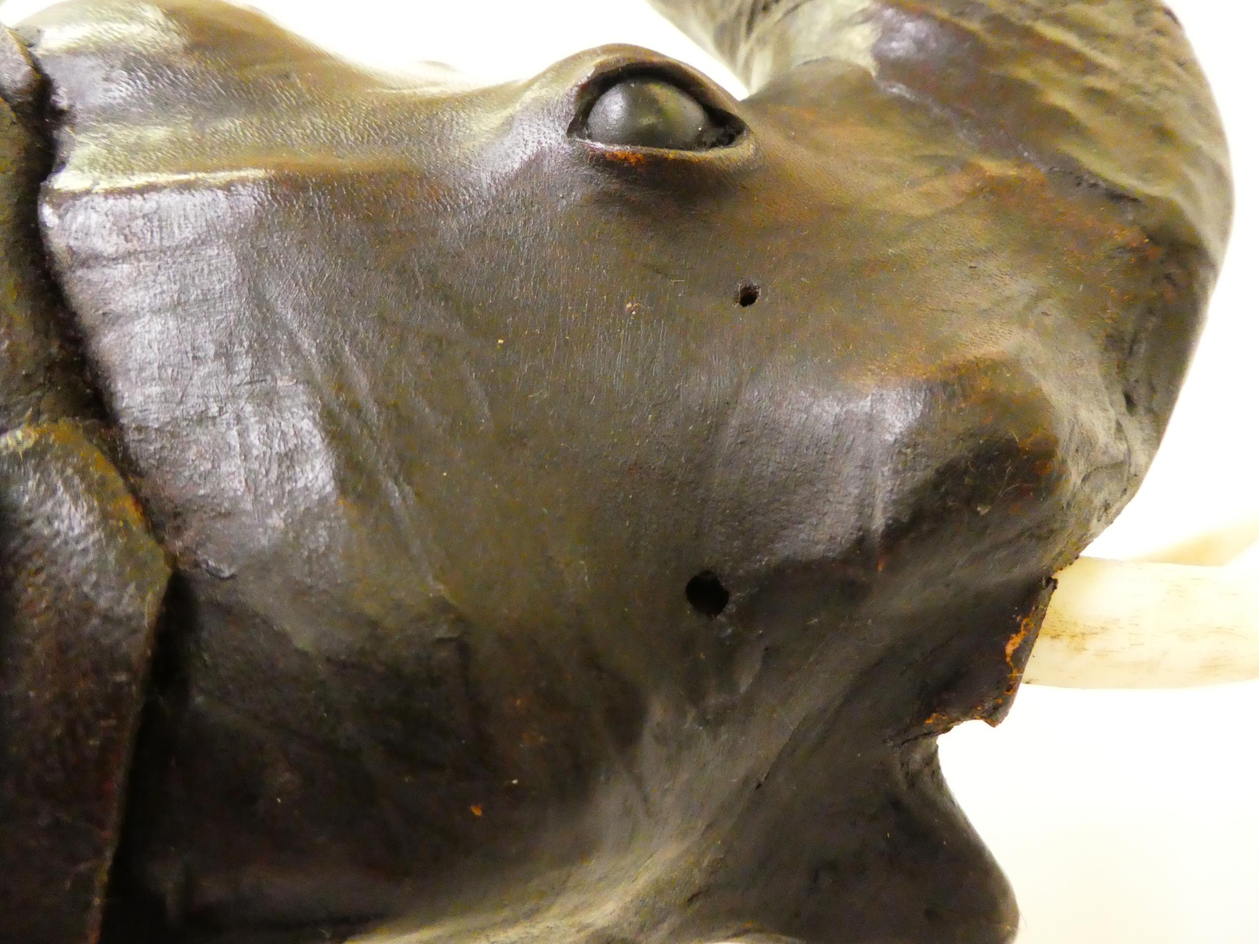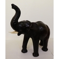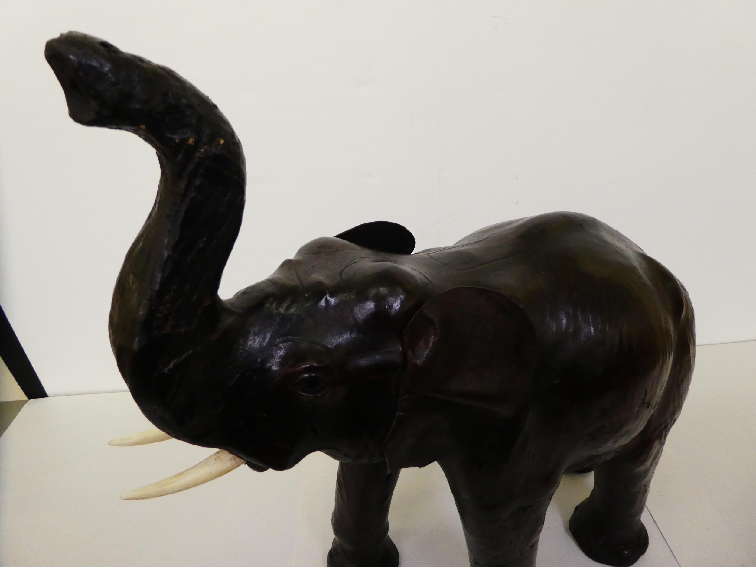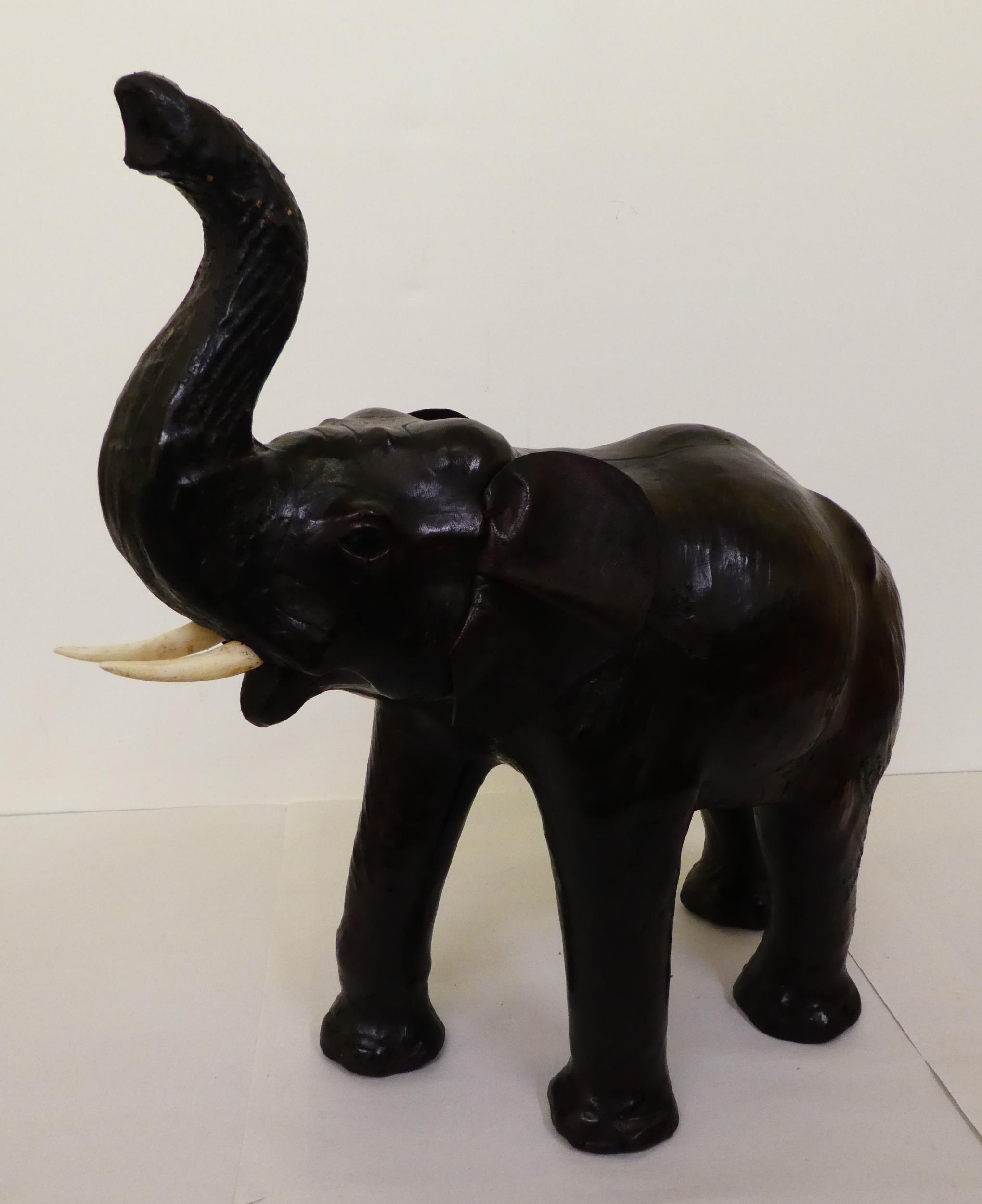 A Liberty's inspired, moulded and stained leather model, a trumpeting elephant 21"h