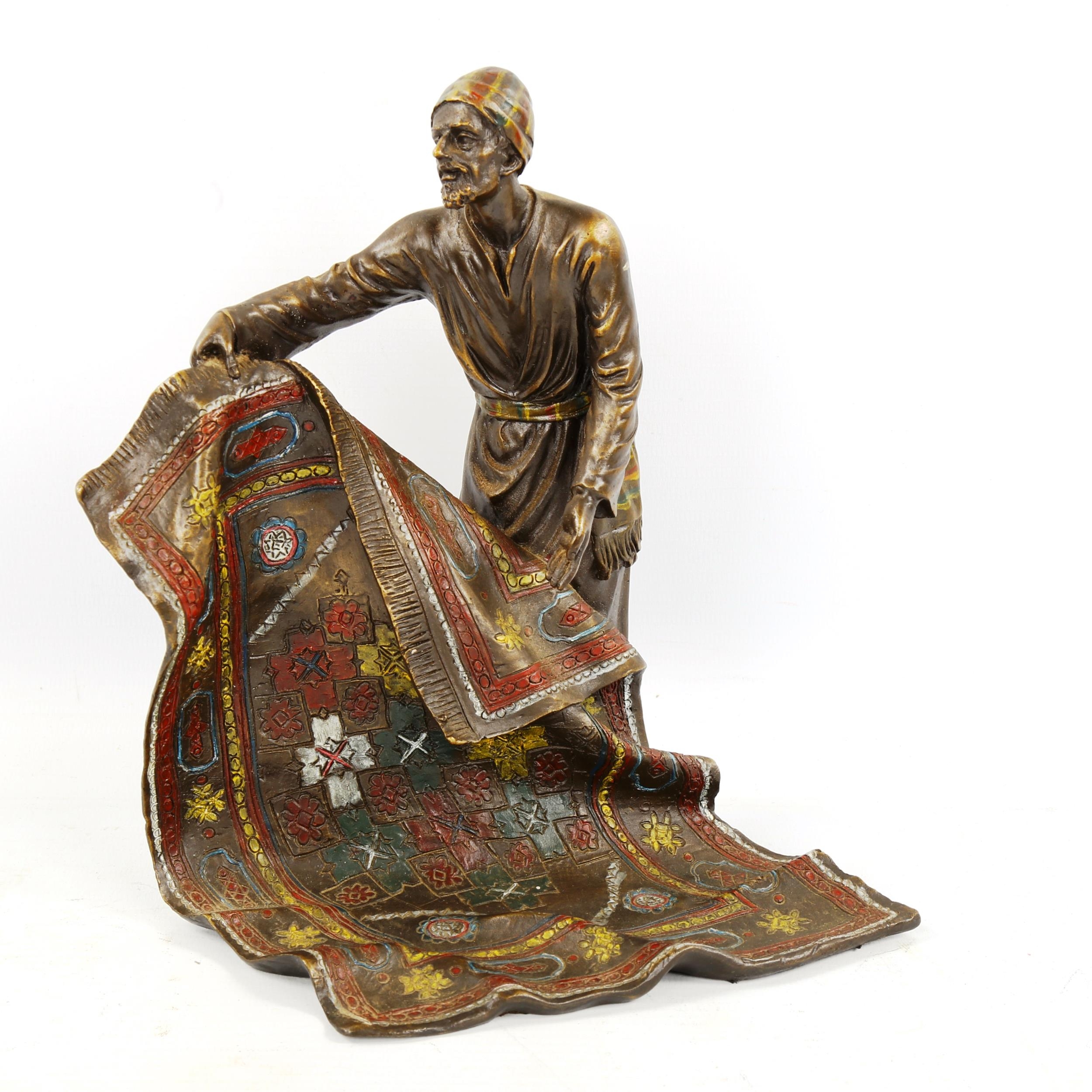 Bergmann style cold painted bronze sculpture, Arab carpet seller, height 20cm