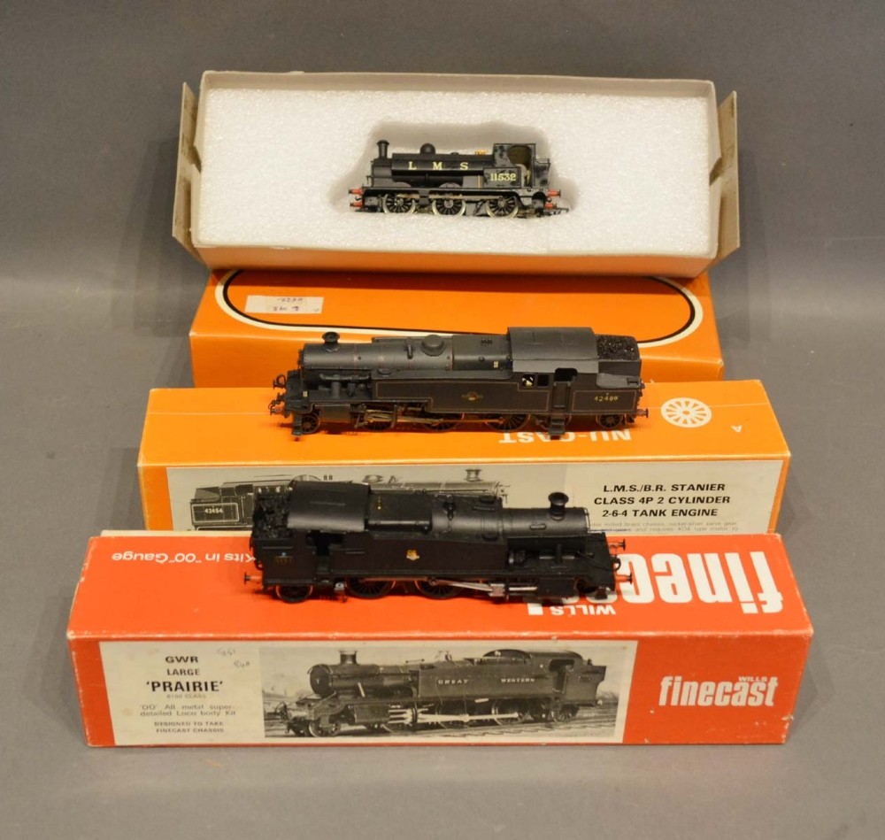 A OO Works Model Railway Model Locomotive LMS11532 within original box, together with a Wills Fine Craft GWR large prairie locomotive and an Nu-Cast Locomotive within original box