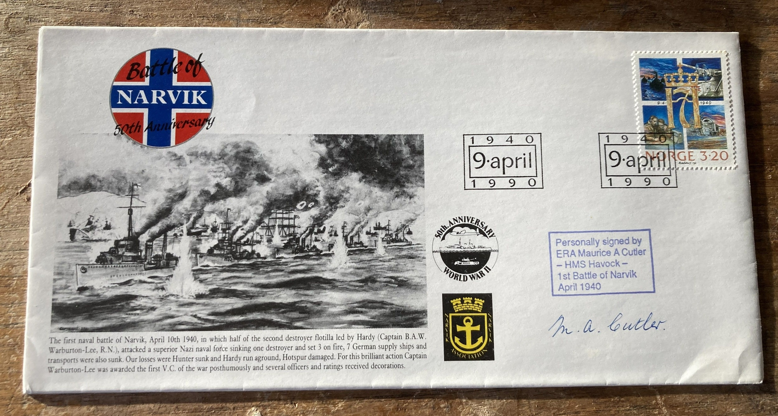 Navy 50th anniv Battle of Narvik cover signed ERA Maurice A Cutler HMS Havock 1st Battle of Narvik April 1940 WW2 Naval FDC. Single Vendor collection. Good condition. We combine postage on multiple winning lots and can ship worldwide. UK postage from £5.99, EU from £7.99, Rest of World from £9.99.