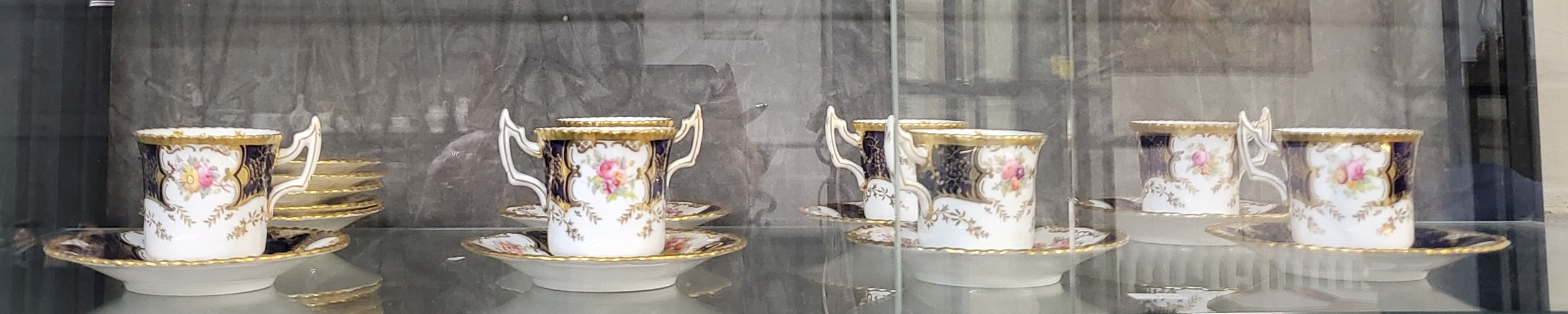 Nineteen antique Coalport batwing cups and saucers. (19)