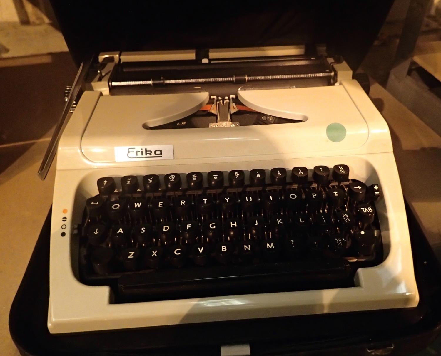 Cased vintage Erika typewriter. Not available for in-house P&P, contact Paul O'Hea at Mailboxes on 01925 659133