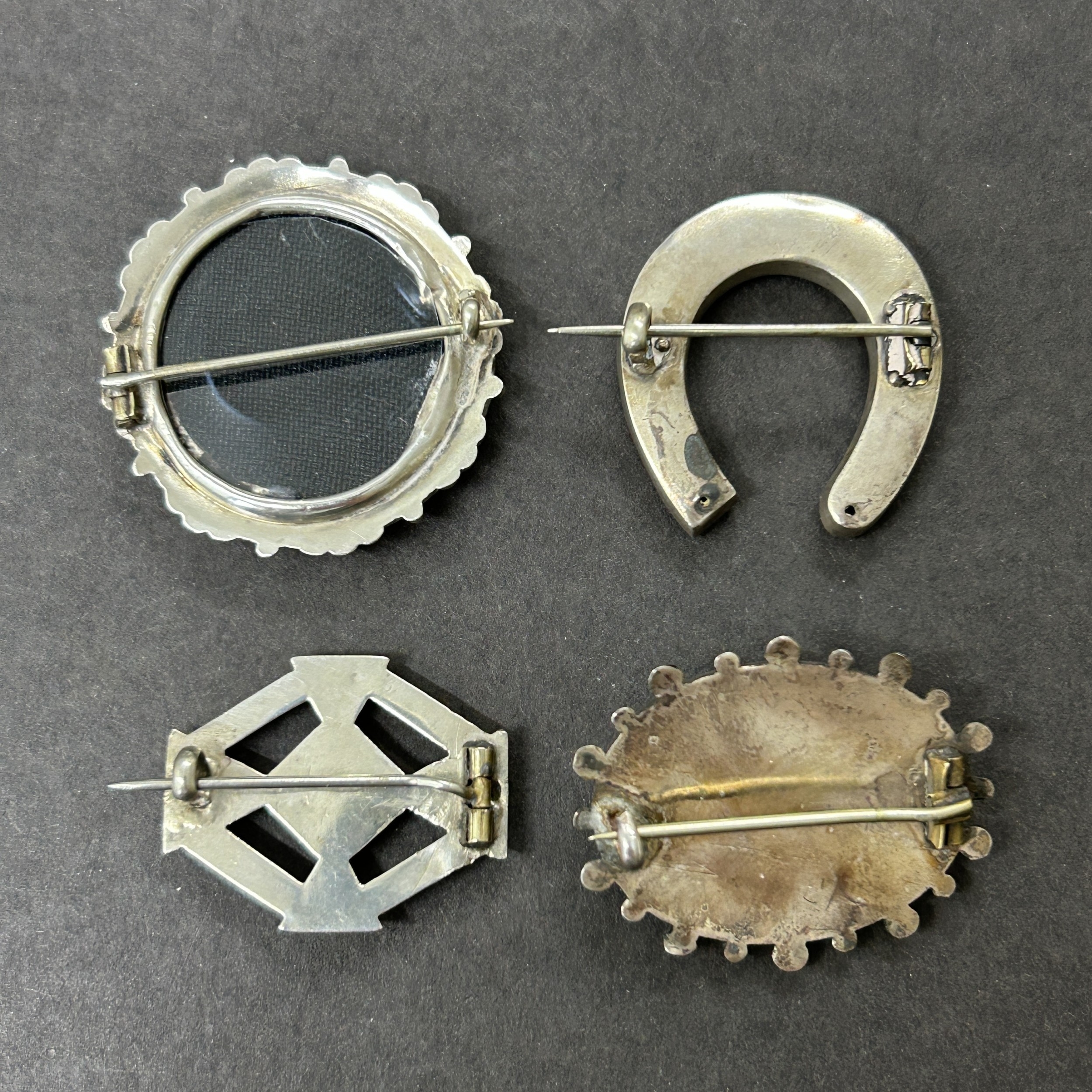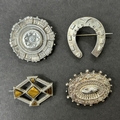 Four white metal vintage brooches, one stone set, combined weight approx. 14g