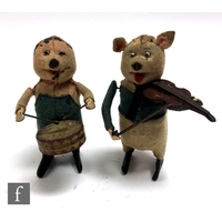 Cragstan Monkey with clean battery compartment. Monkey Cowboy lacking inner material from left arm, both hands, pistols and hat. Fire Chief car with some corrosion to battery compartment. Hole to beret of remote control dog. Gun missing from tank. Busy Secretary heavily corroded.