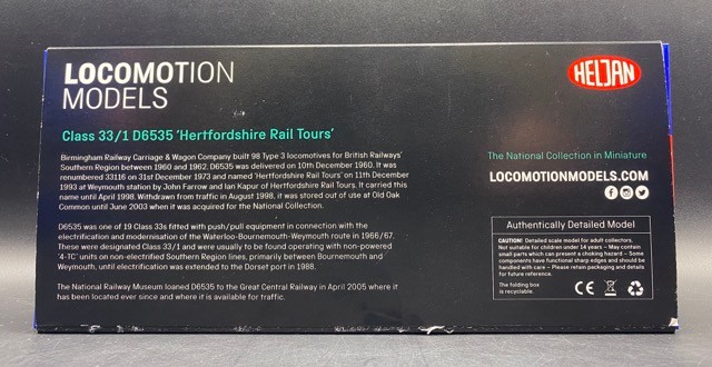 Heljan 3363 Locomotion Models Exclusive Edition - Class 33 BR Blue 33116/D6535 Hertfordshire Rail Tours