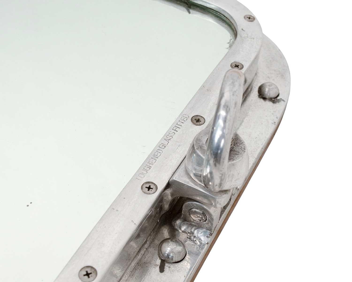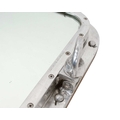 SS Canberra, P&O, an aluminium ship's window. Now fitted as a mirror, the ship was broken up in Pakistan in 1997, it has 4 four locking turn screws, opens on its hinges, has a back board and a mirror fitted, 46 x 56cm.