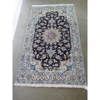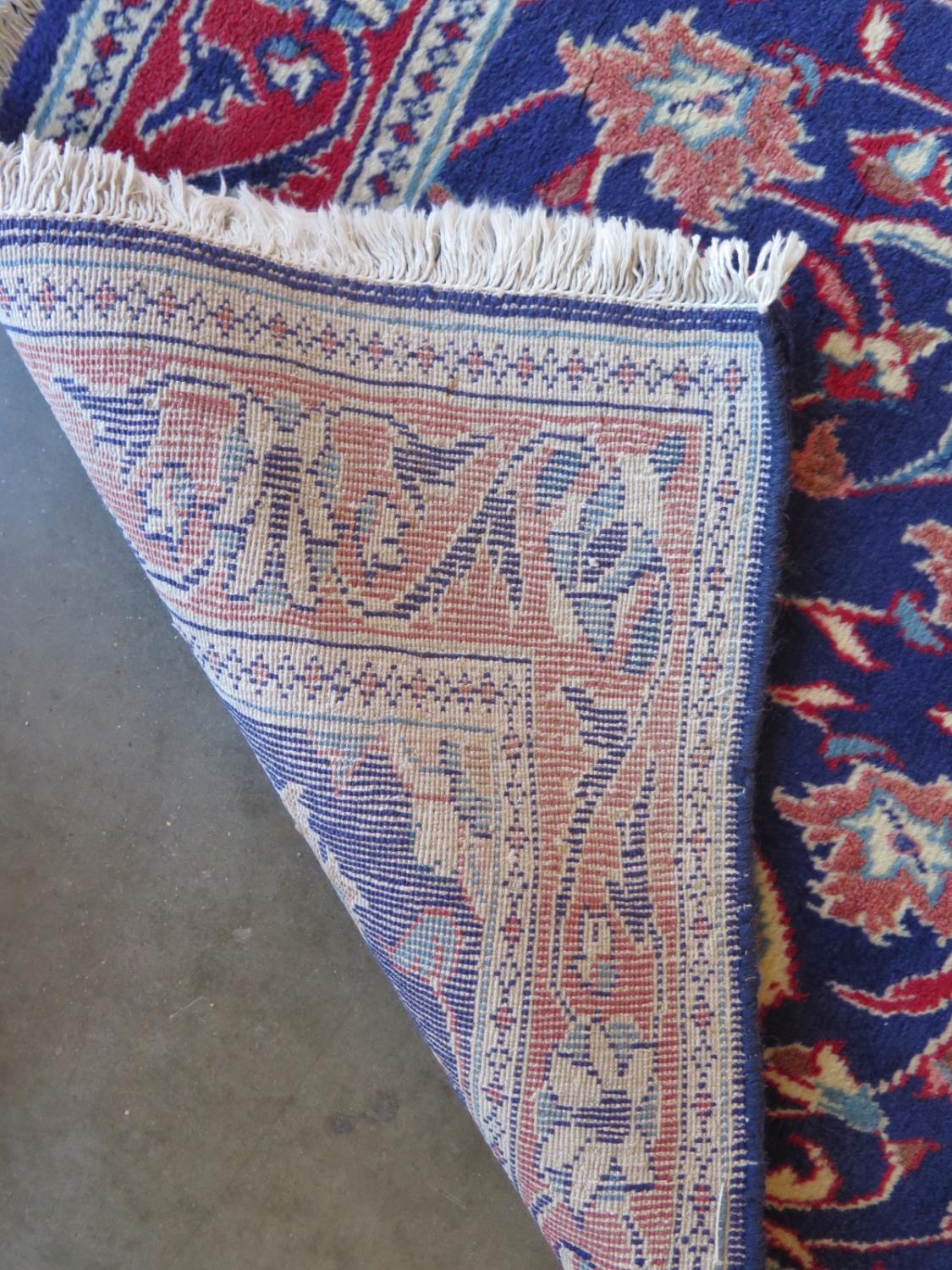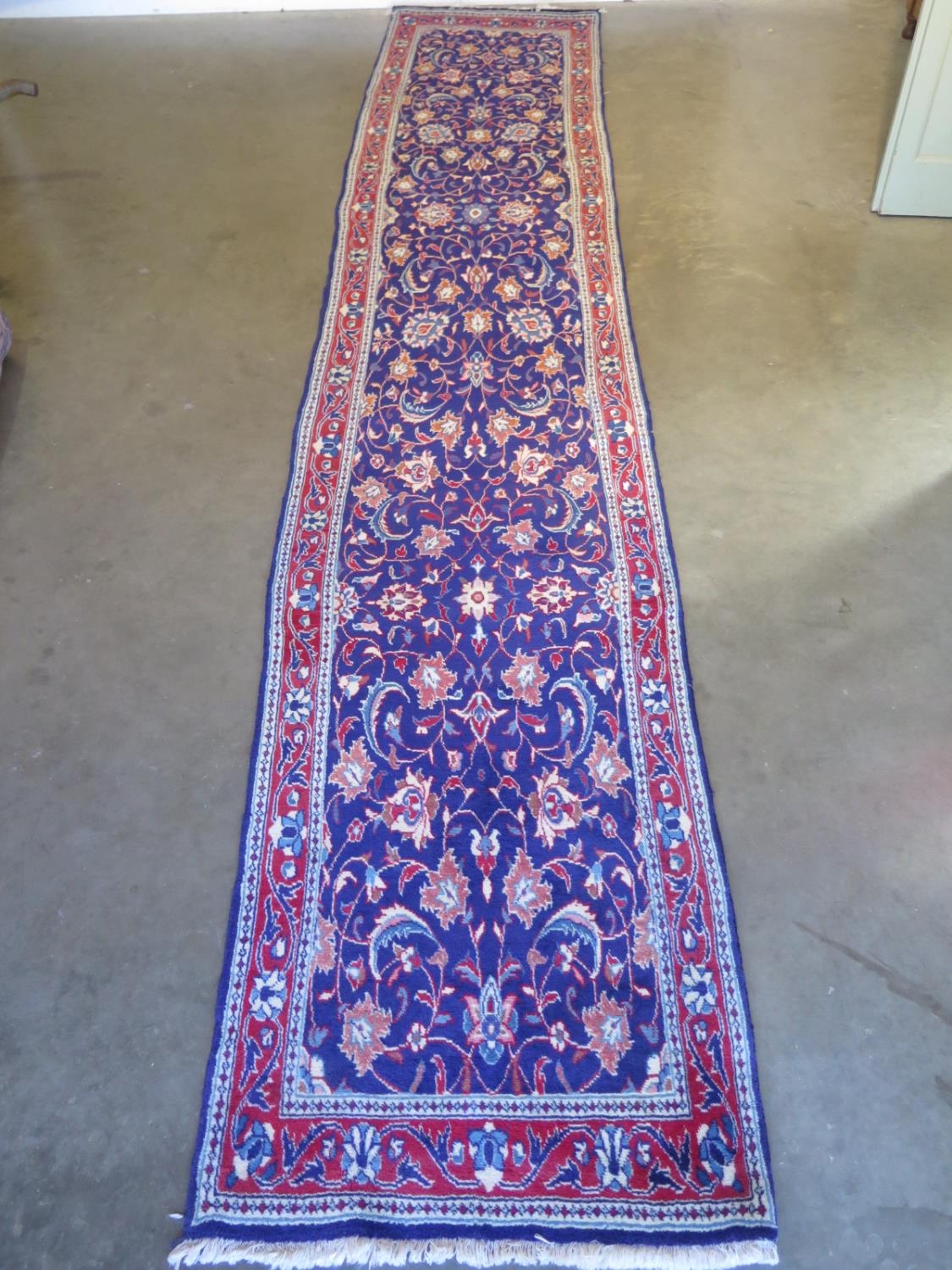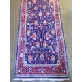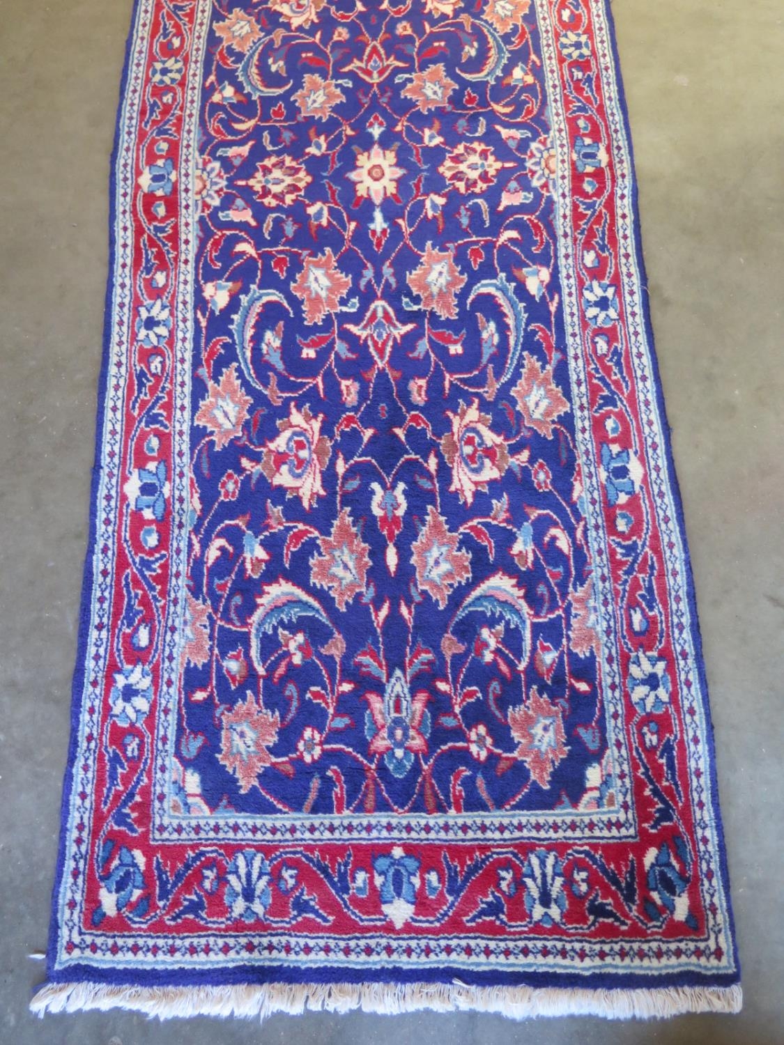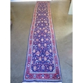 A hand knotted Iranian woollen runner with a blue field and foliate decoration - 415cm x 78cm - in good condition