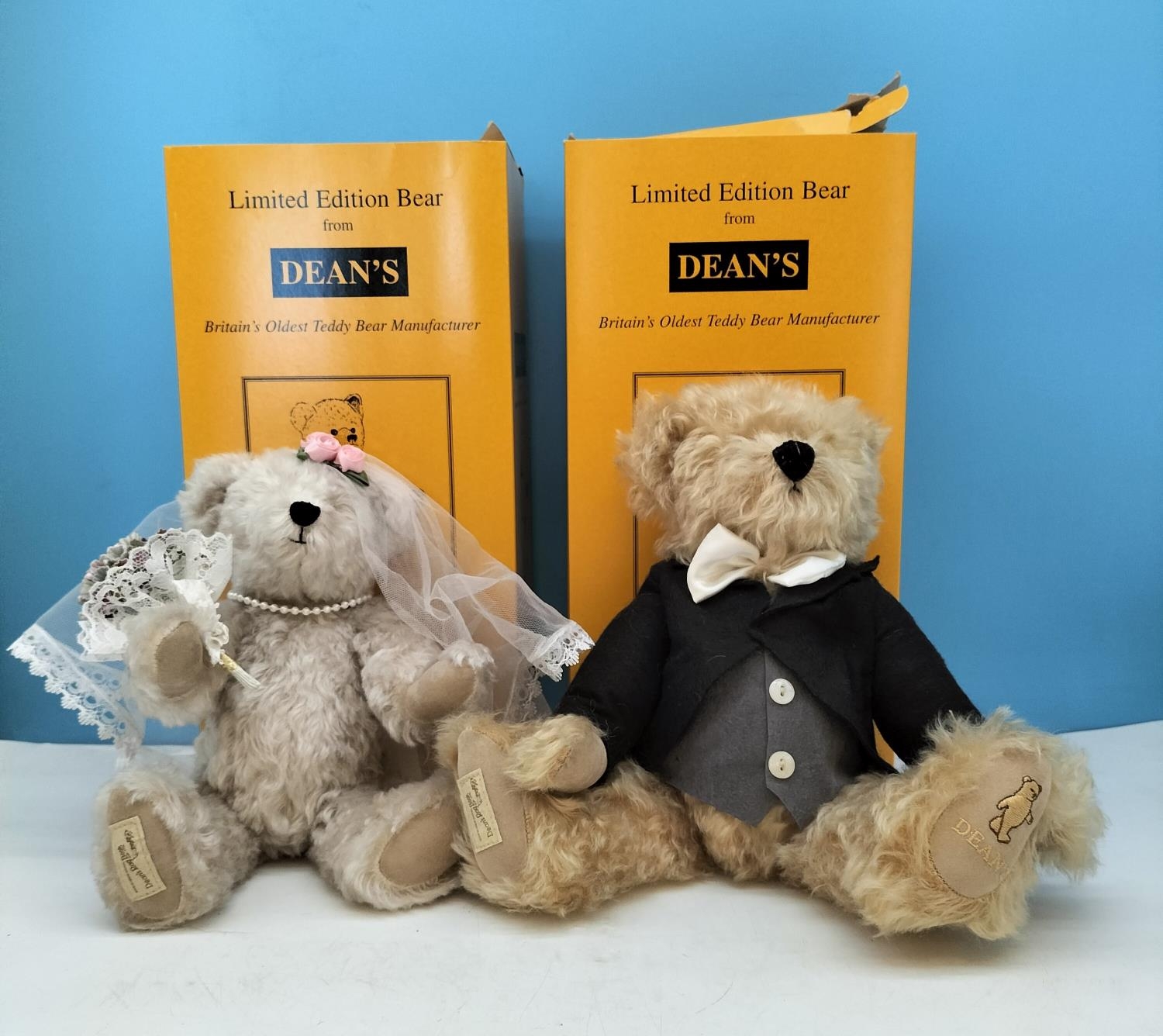 Boxed Dean's Rag Book Co Special Edition 'Wedding Day Bride and Groom' Bears with Tags and Certificate.