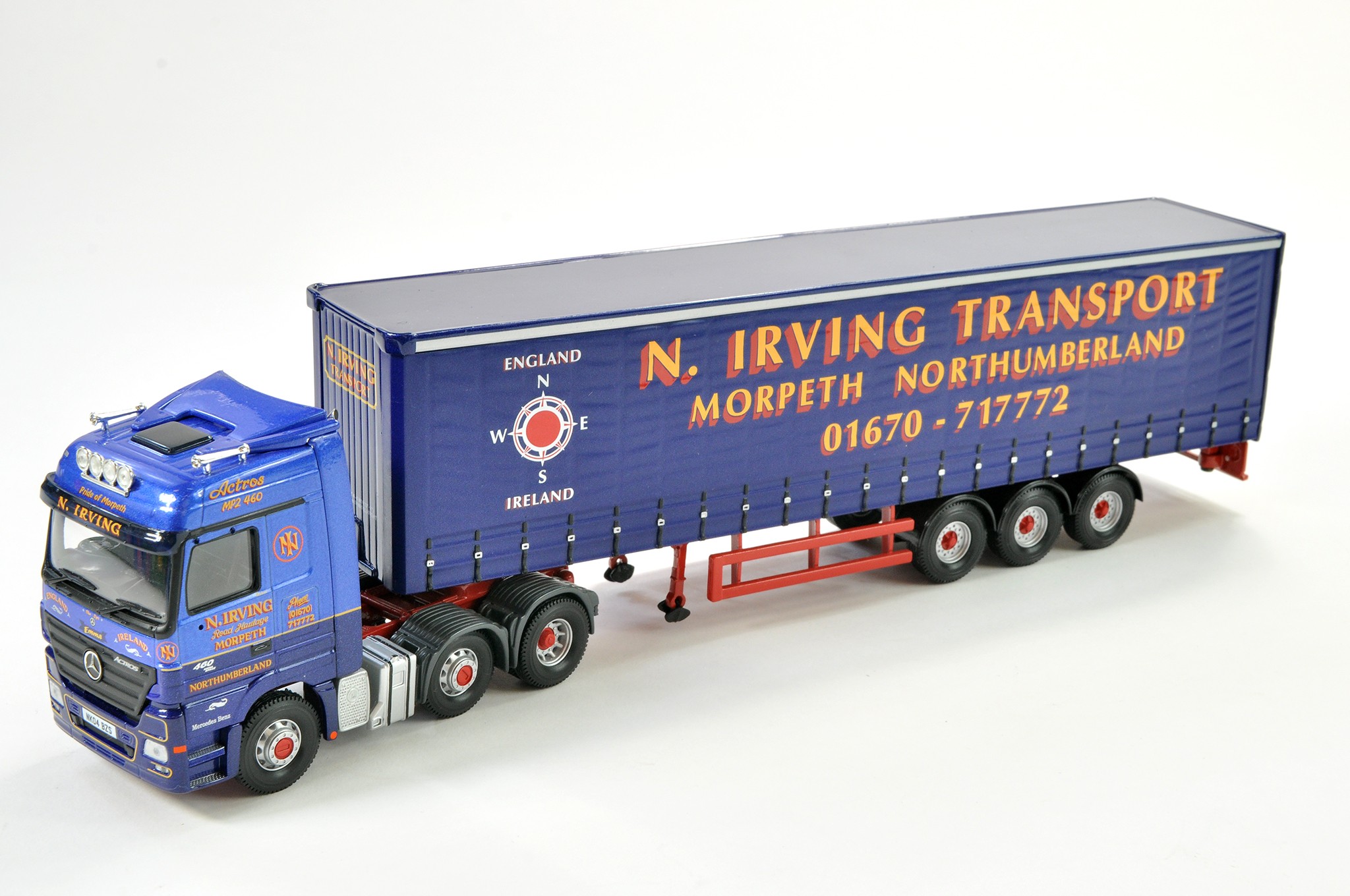 Corgi Diecast Model Truck issue comprising Mercedes Curtainside in the livery of N Irving. Appears good, missing outer packing, likely displayed so possibly some light cosmetic wear in places.