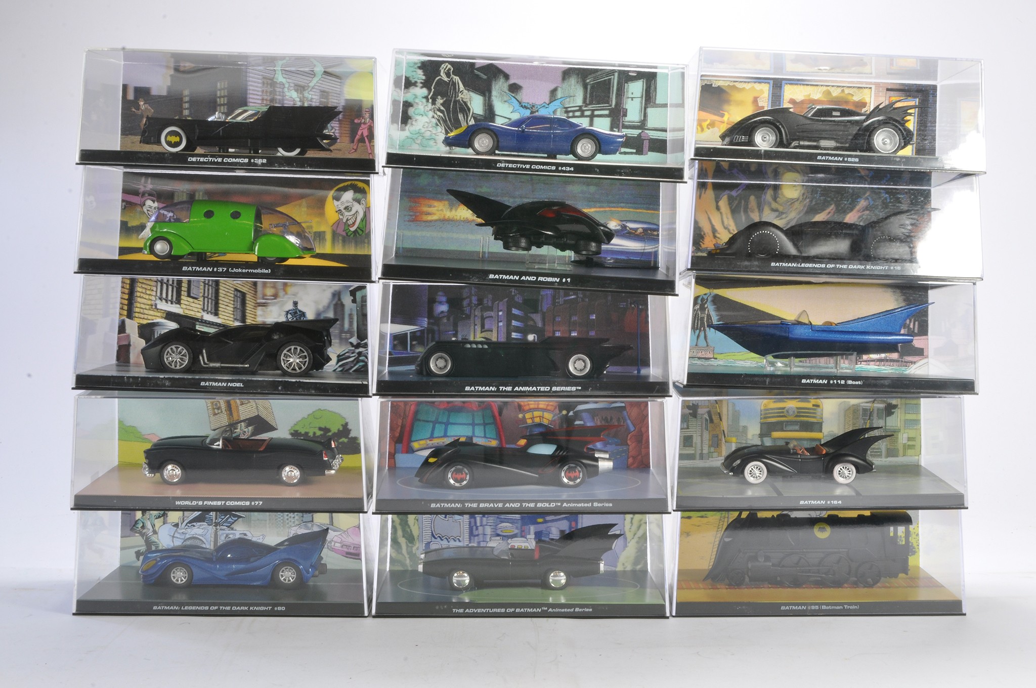 A group of fifteen Eaglemoss DC Comics - Batman 1/43 vehicles as shown. Look to be without fault in original display cases.