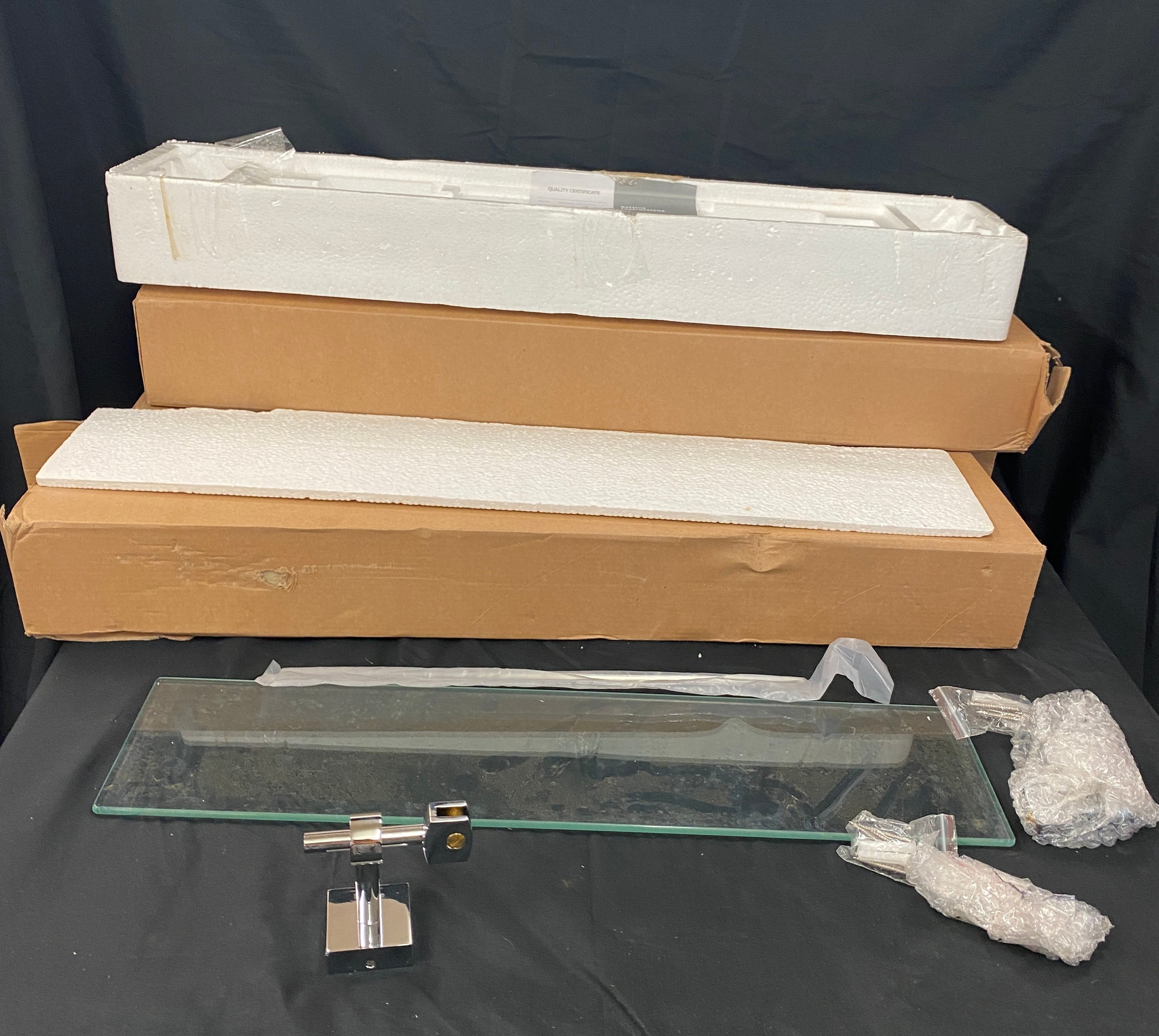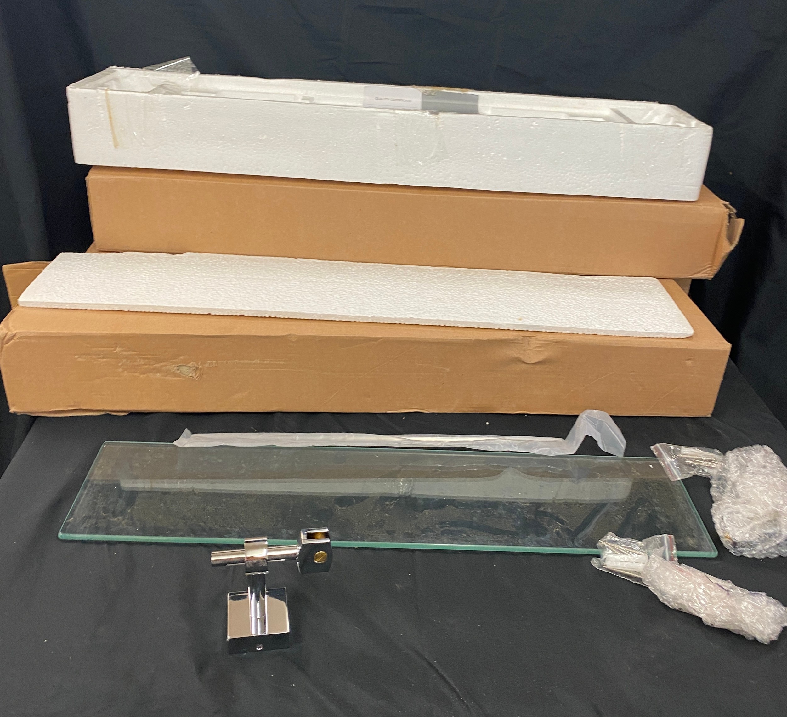 Set of 4 glass shelves, brand new in box