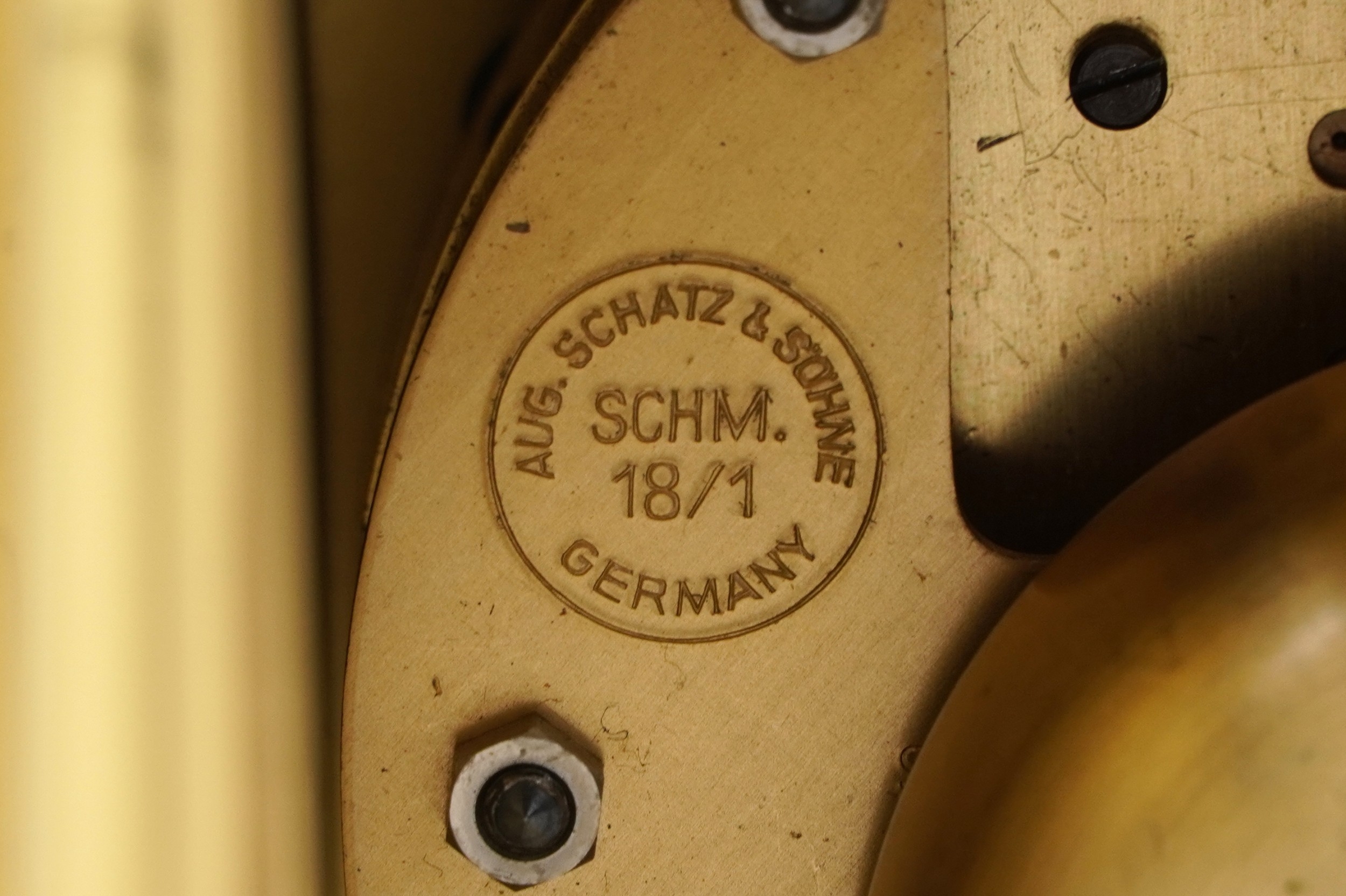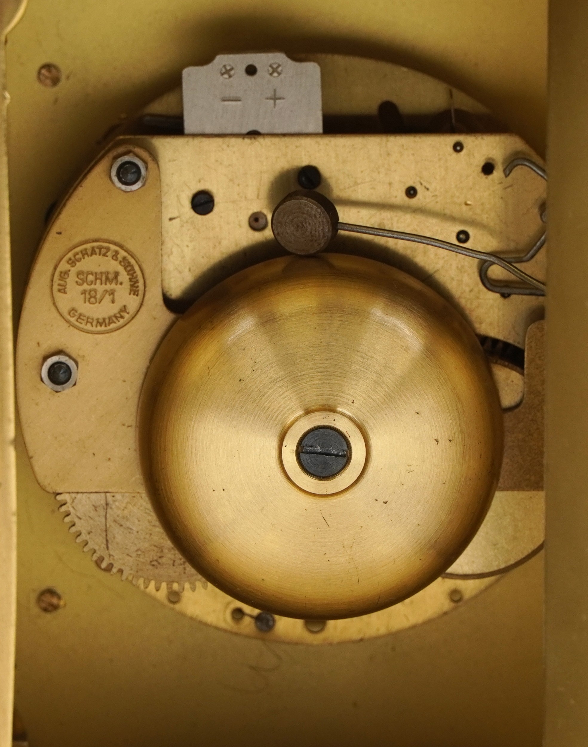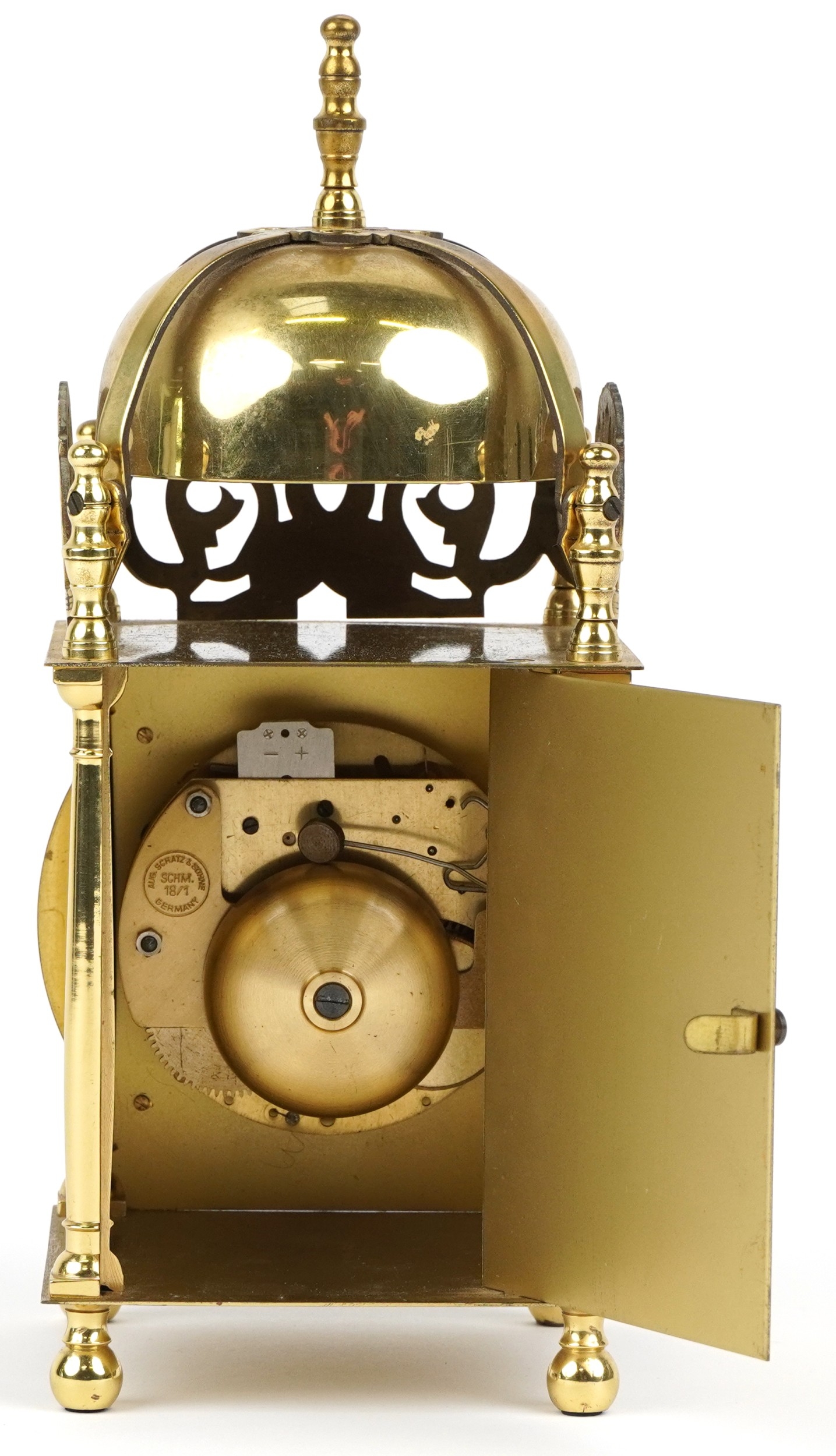 An Aug Schatz & Sohne brass lantern clock having an engraved...
