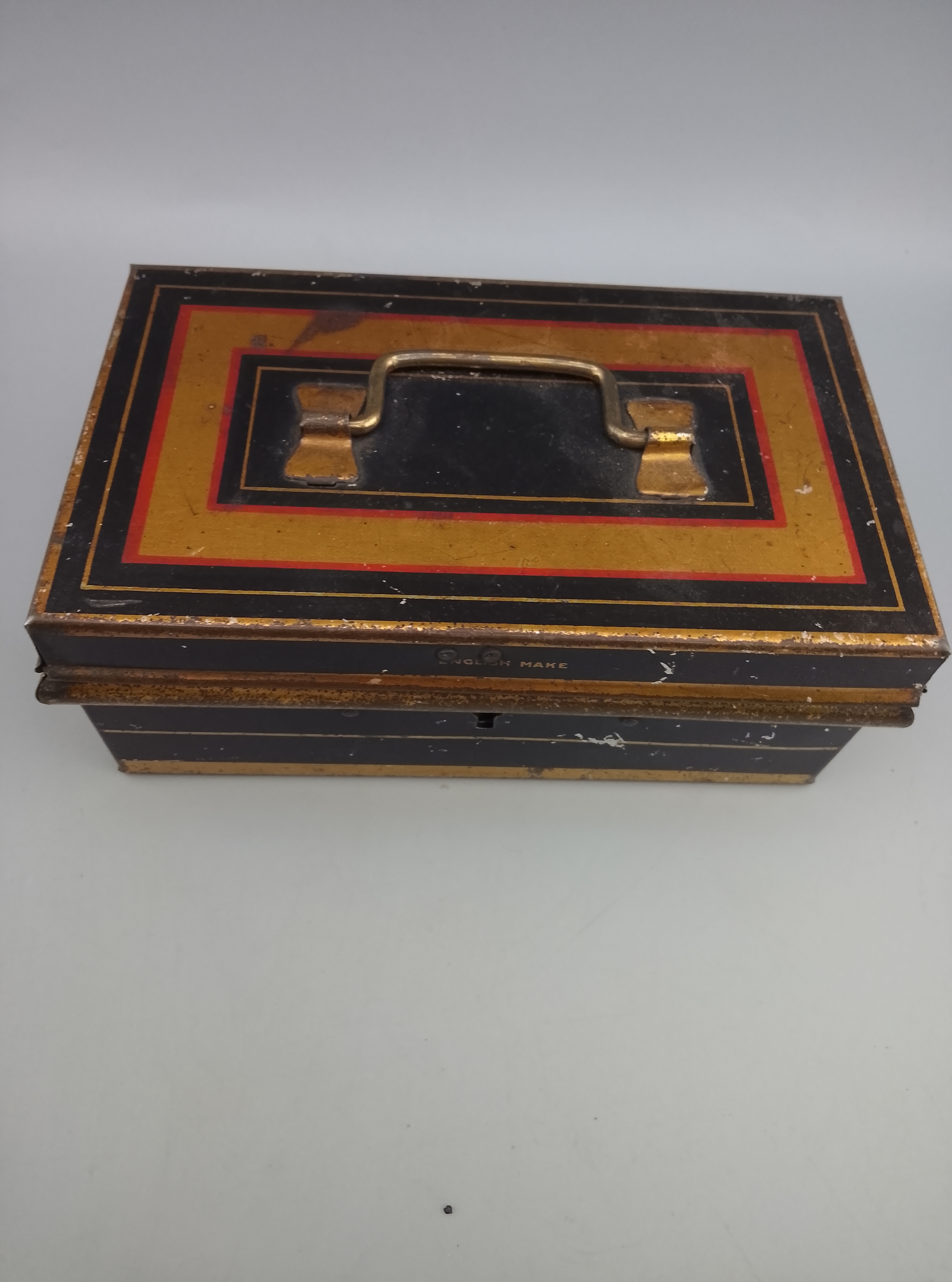 Vintage Money Box Savings Tin No Key Black Red Gold Full of ...