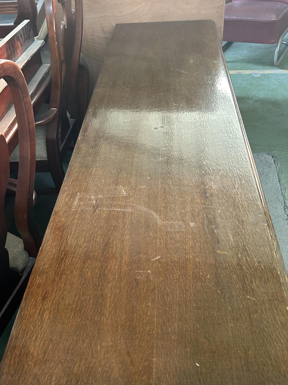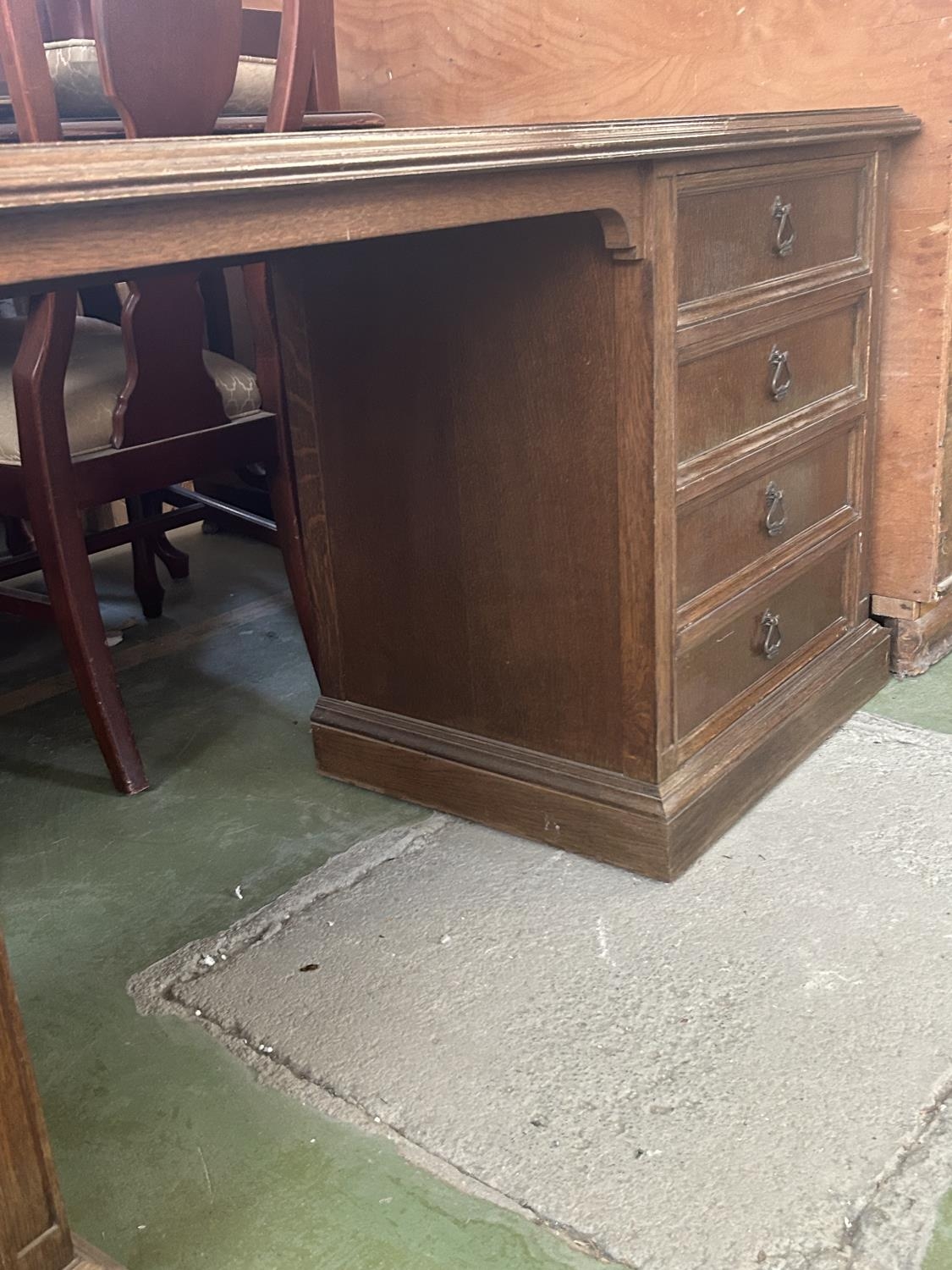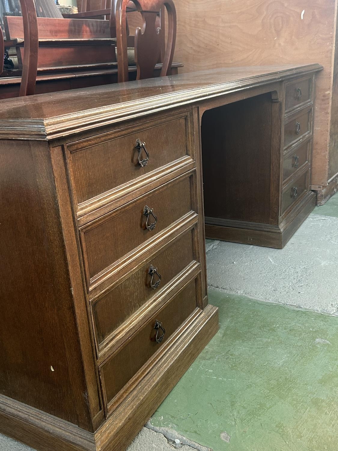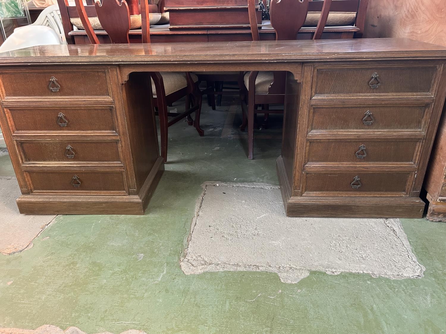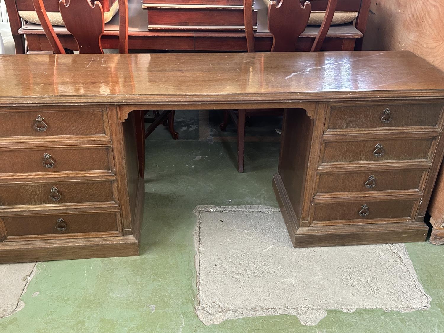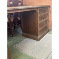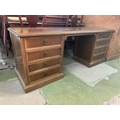 Vintage Solid Oak Classic Kneehole Desk with Multiple Drawers (187 W. x 50 D. x 73cm H.)
