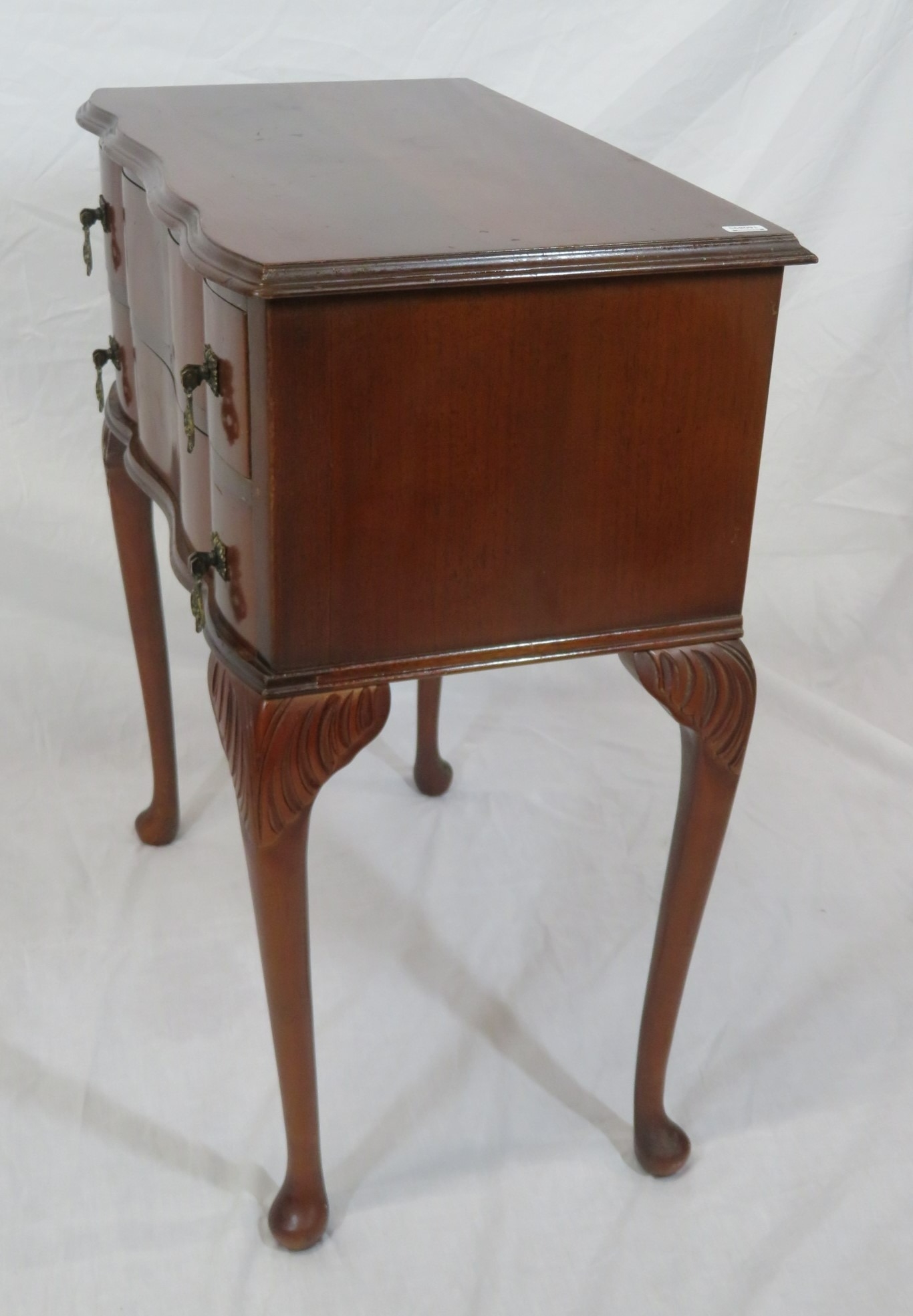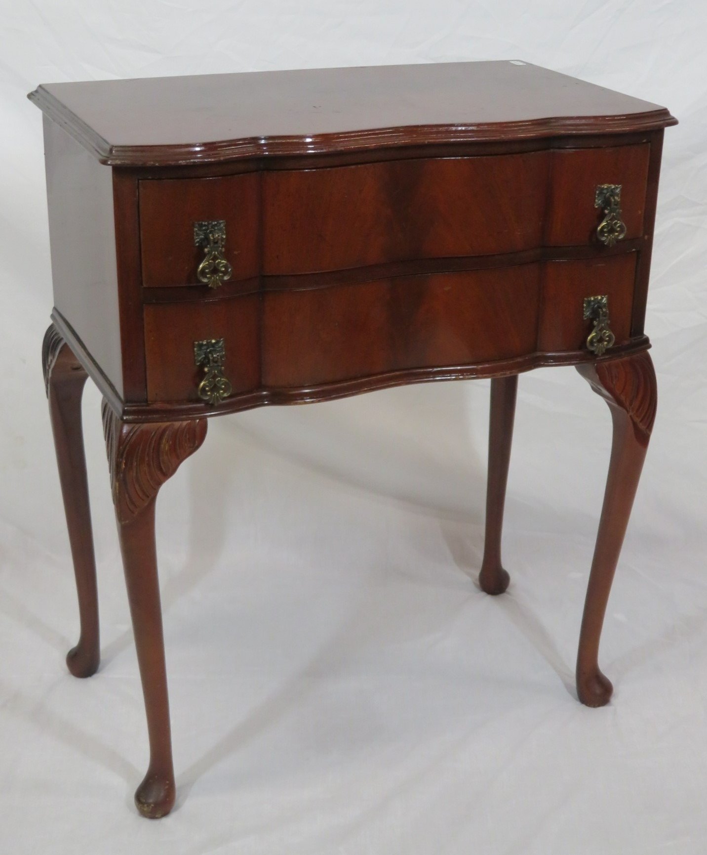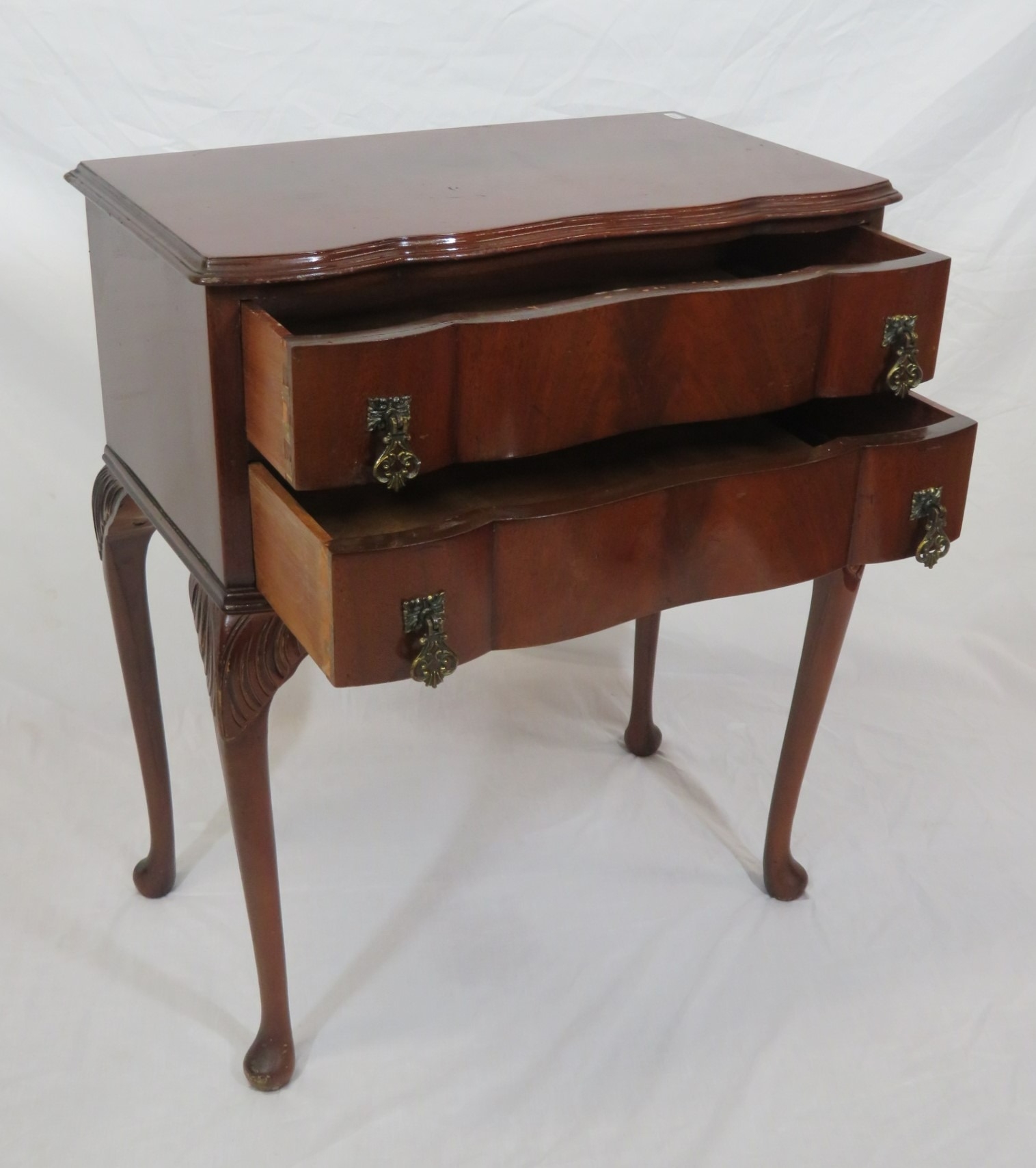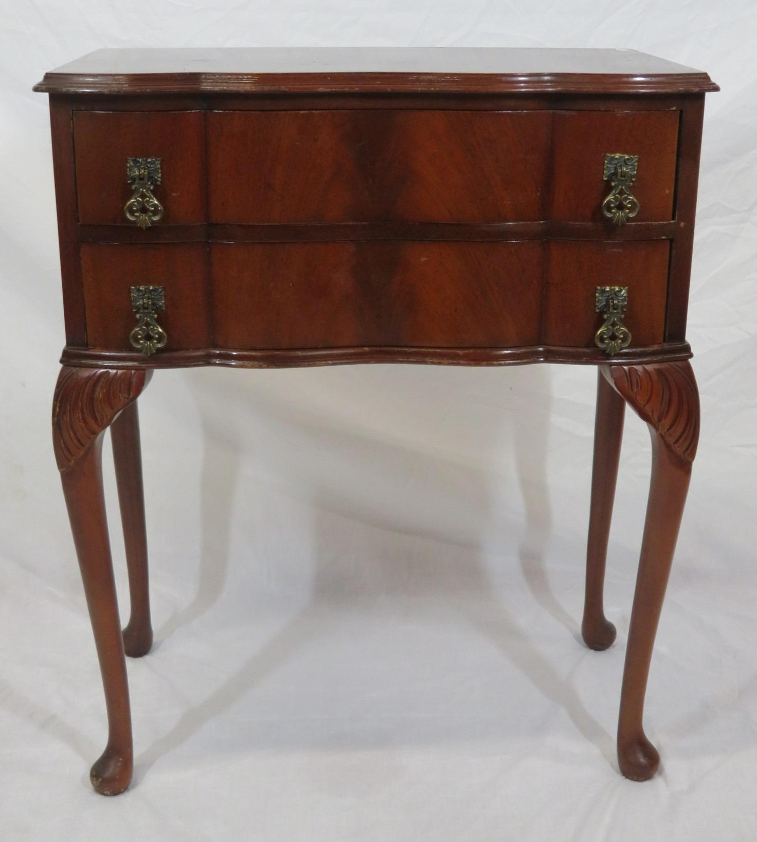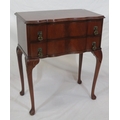 Mahogany serpentine fronted hall or side table with 2 frieze drawers, drop handles, on cabriole legs