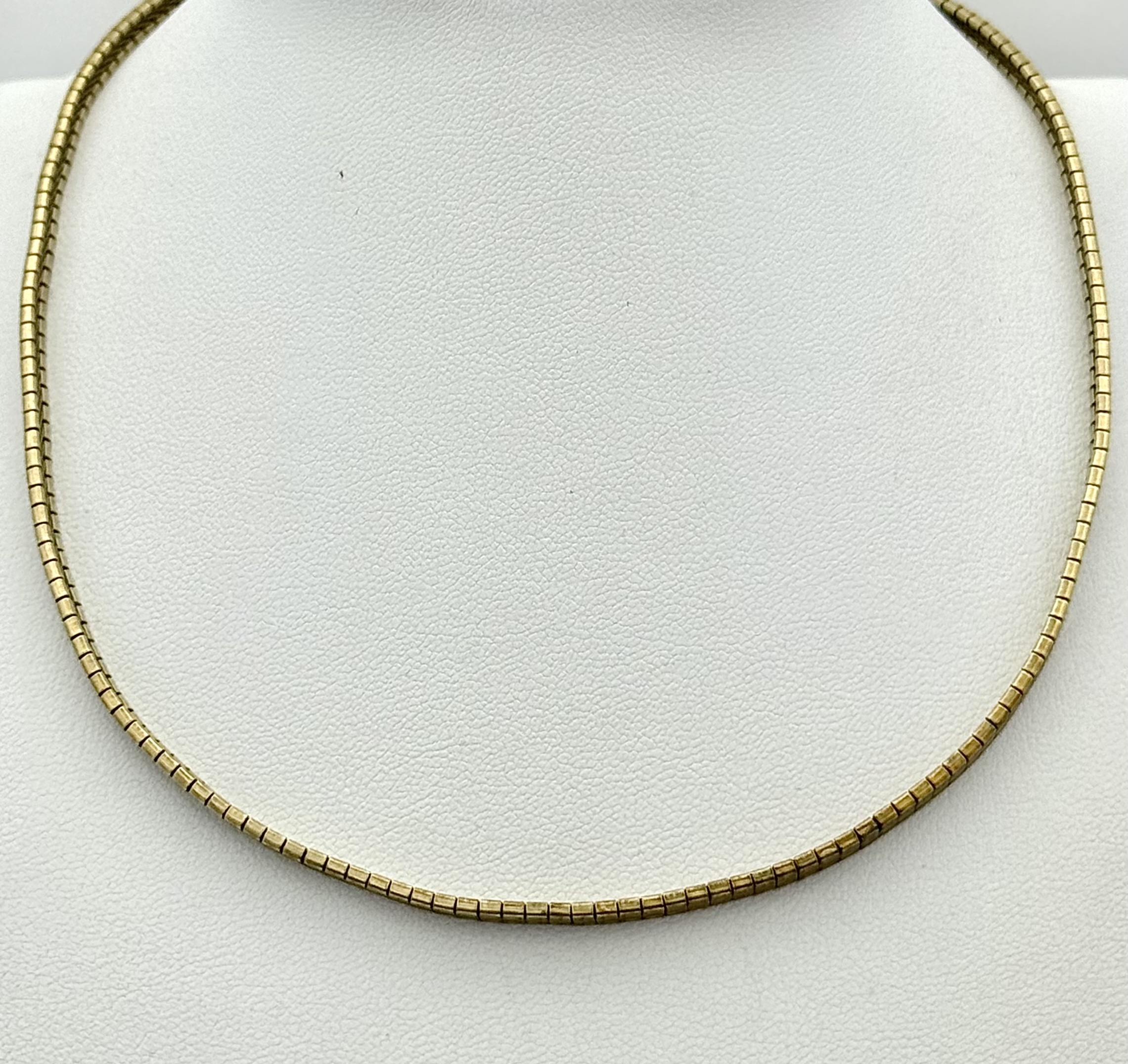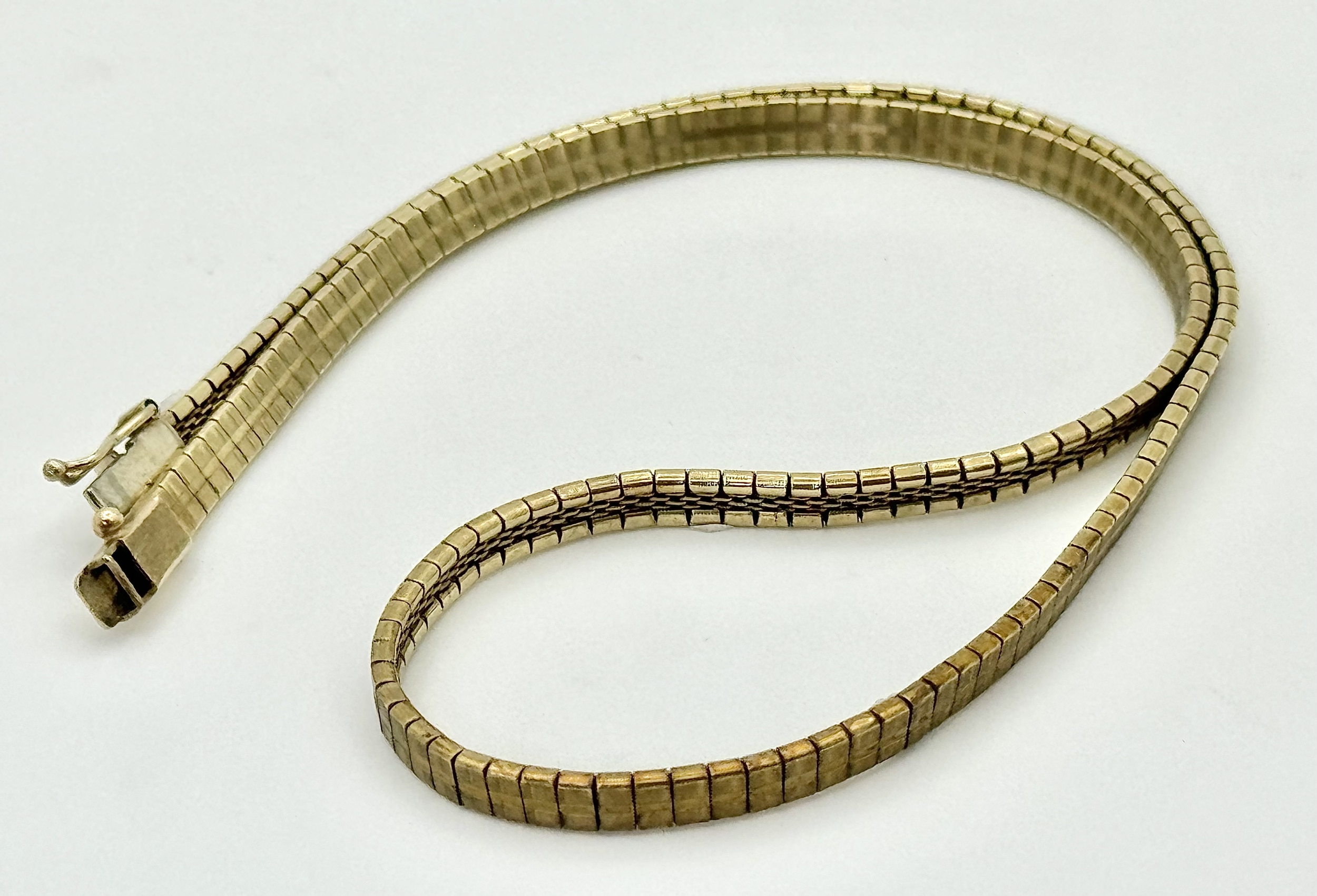 A "SLINKY" STYLE 9K GOLD NECKLACE WITH SAFETY CATCH . 17.6gms 40cms