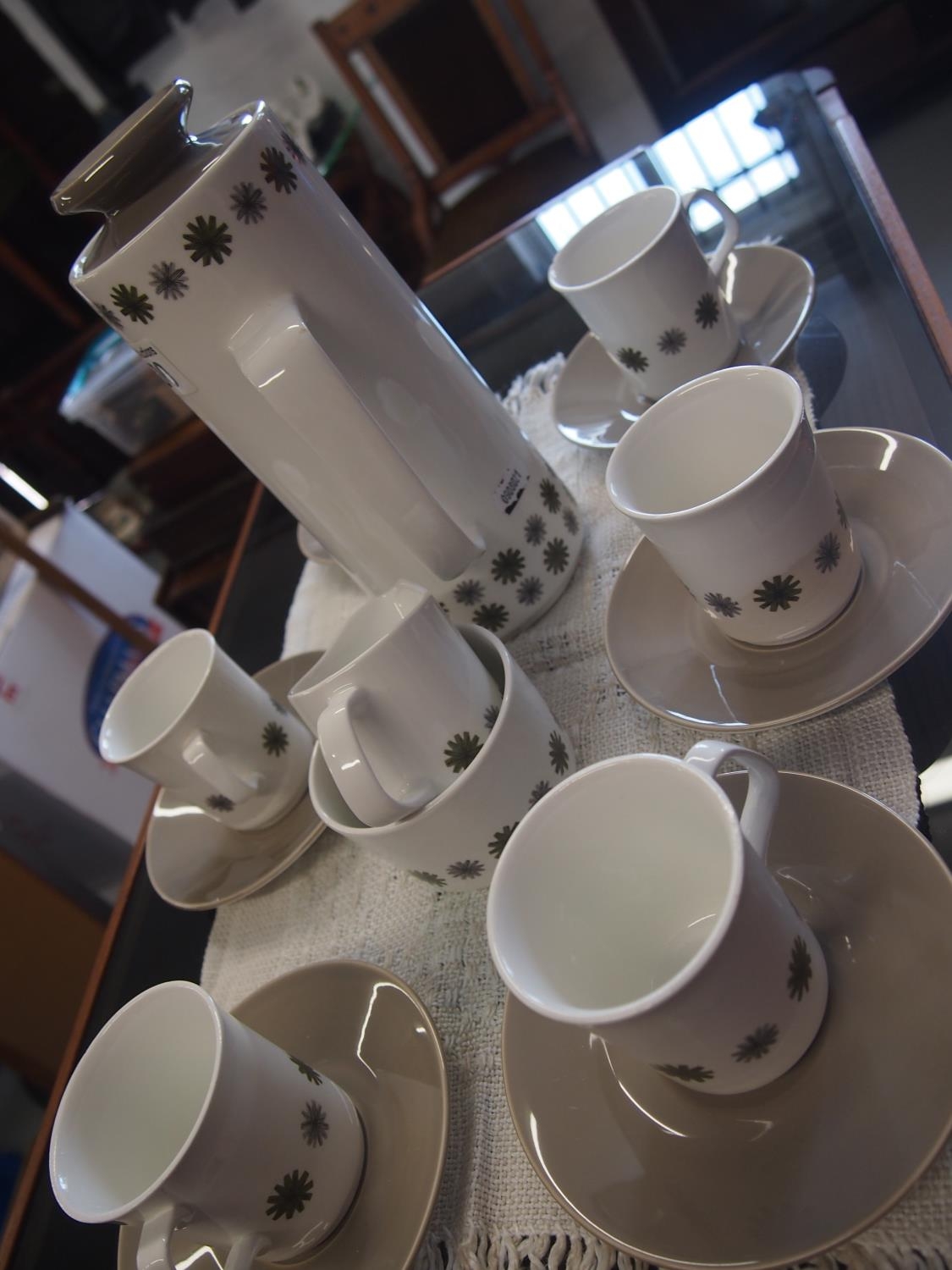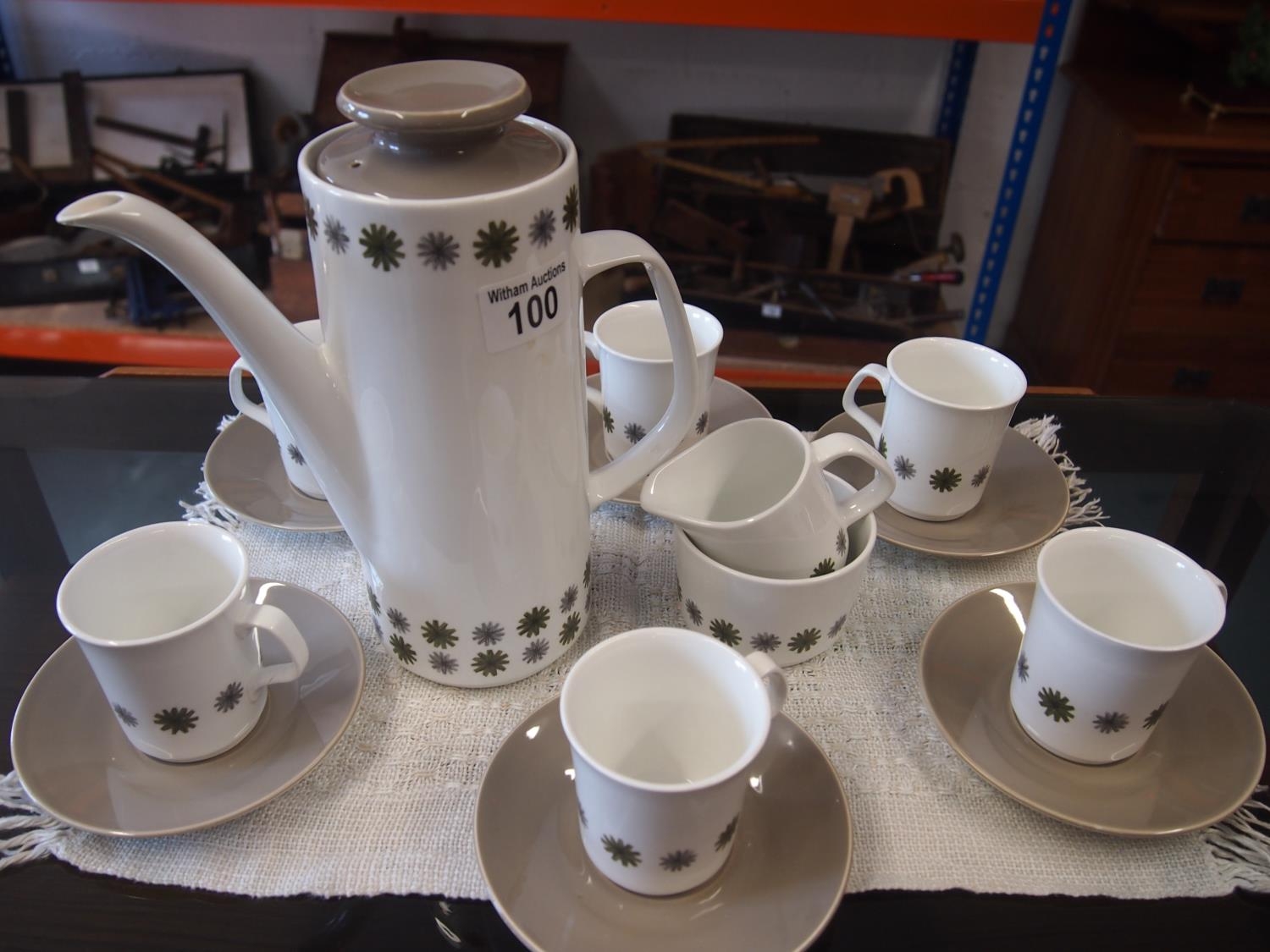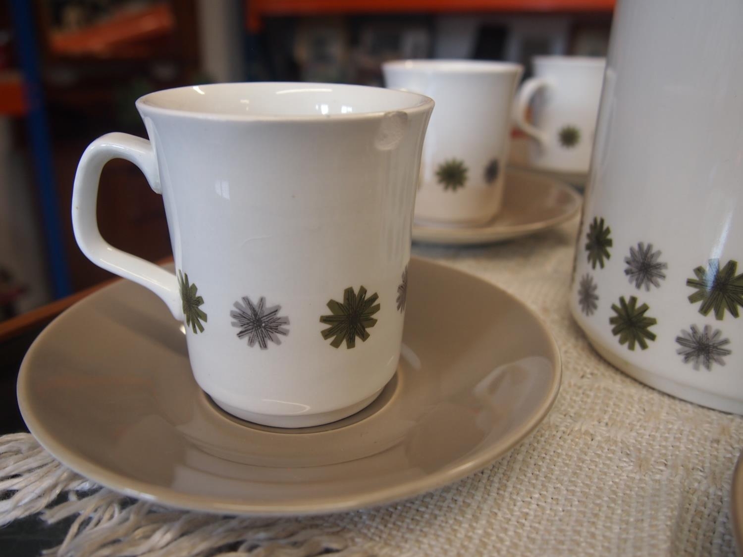 A 1960's 'Allegro' coffee set by J & G Meakin, A/F to one cup
