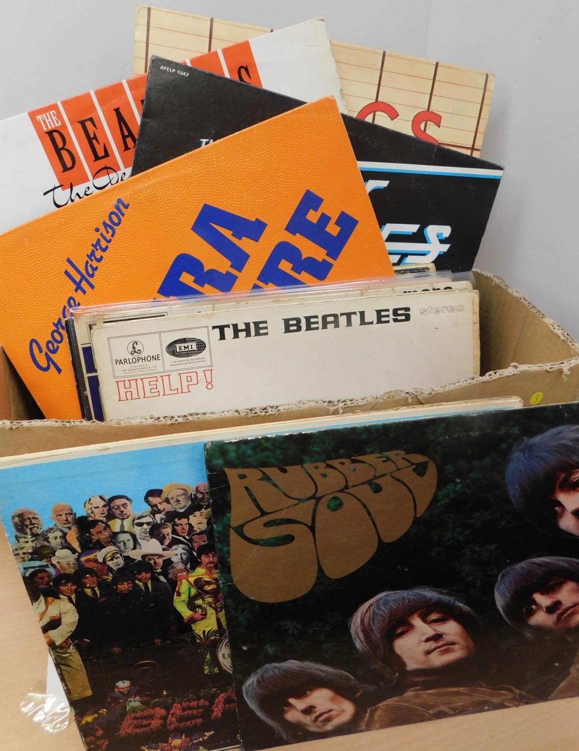 Box of Beatles LP records incl. imports