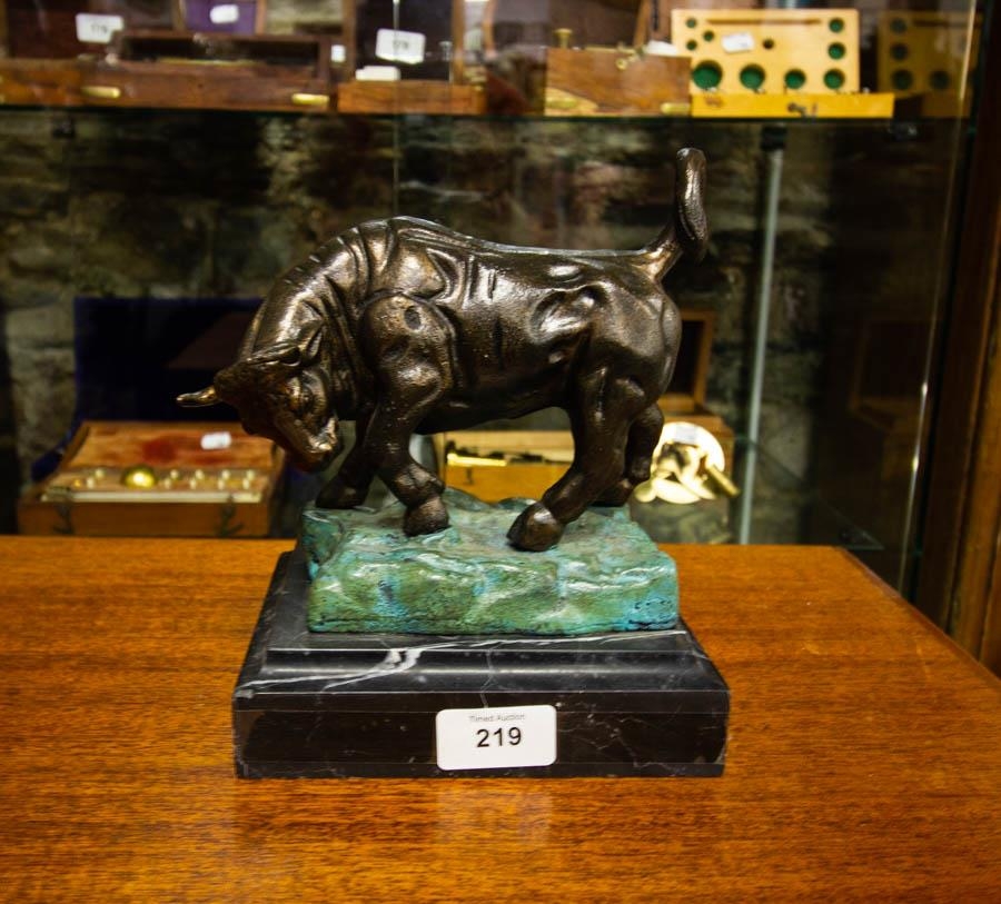 BRONZE BULL ON PLINTH