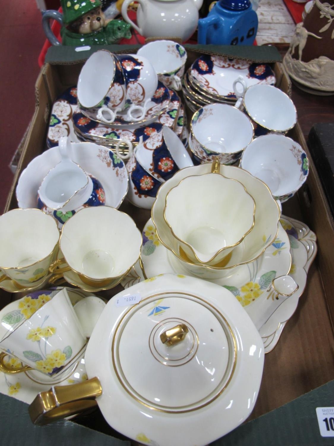 Tuscan Plant Art Deco Teaware, of nineteen pieces, yellow flower with gilt rims on cream ground, including teapot and blue with floral teaware pf thirty-one pieces.