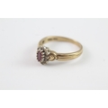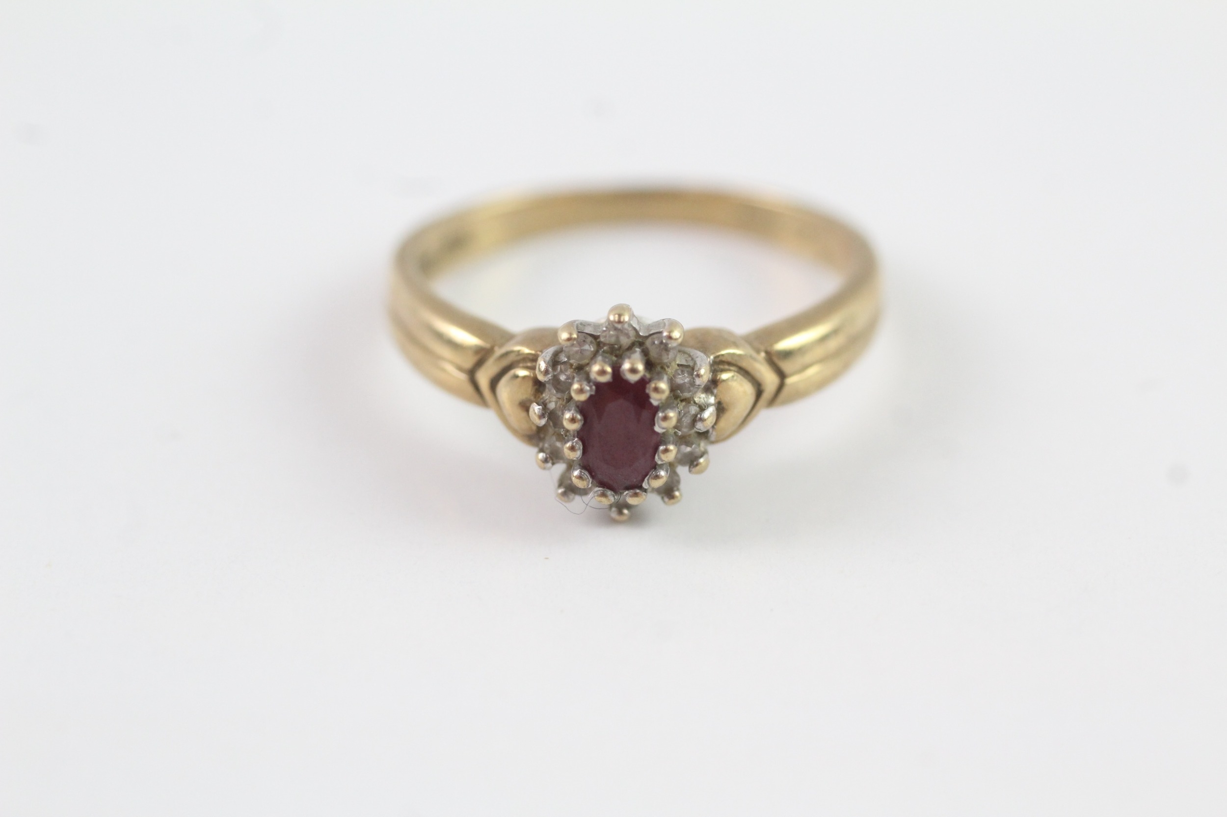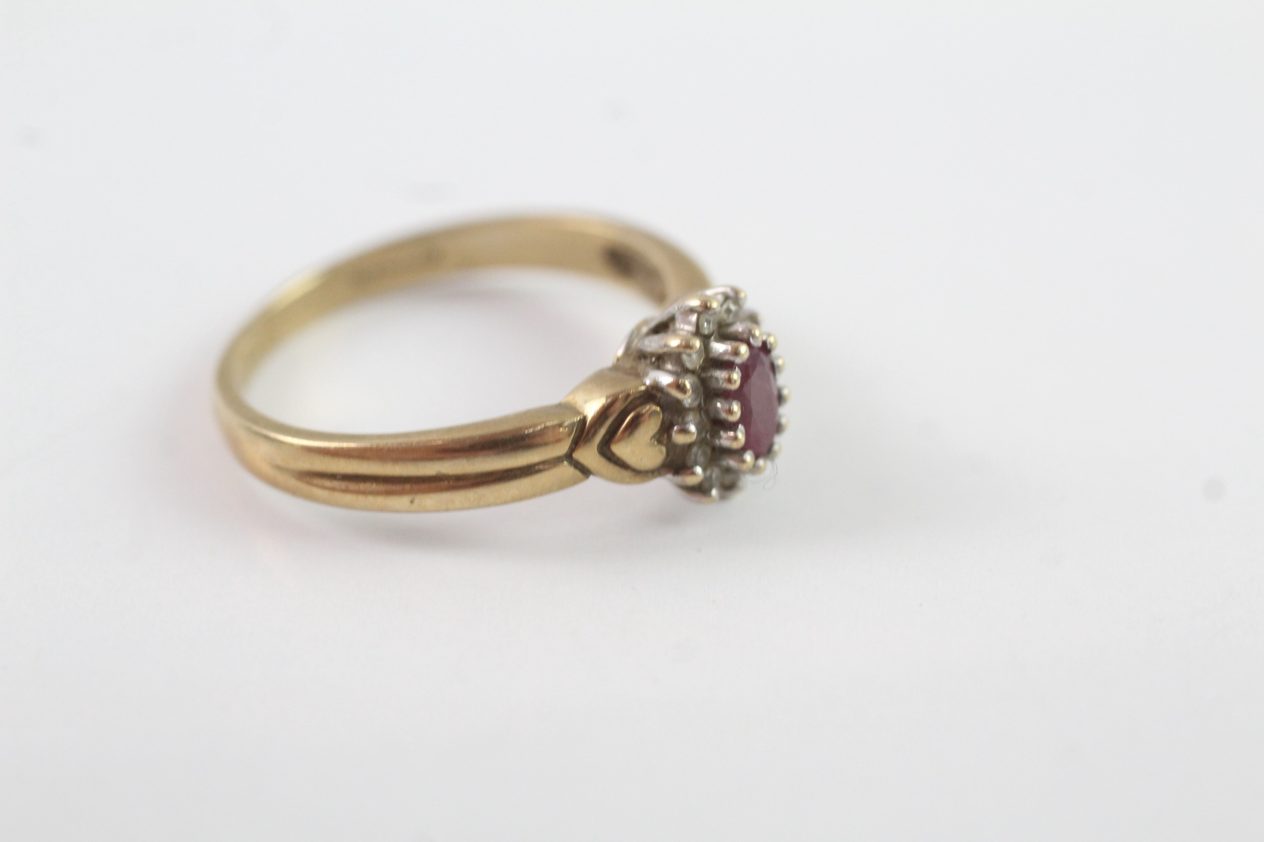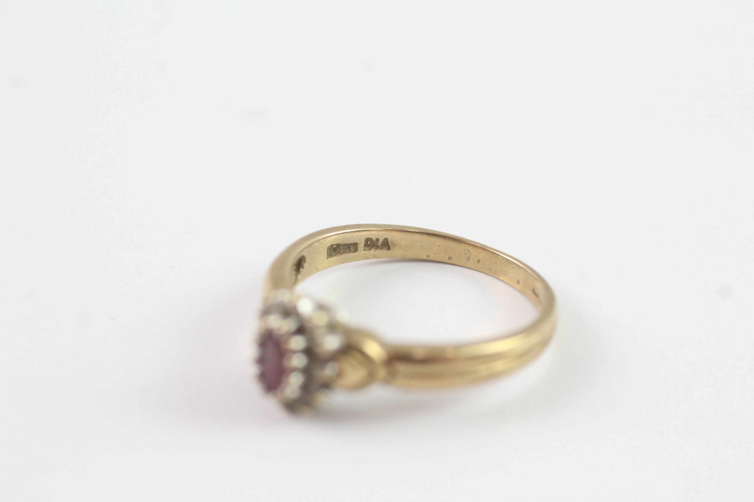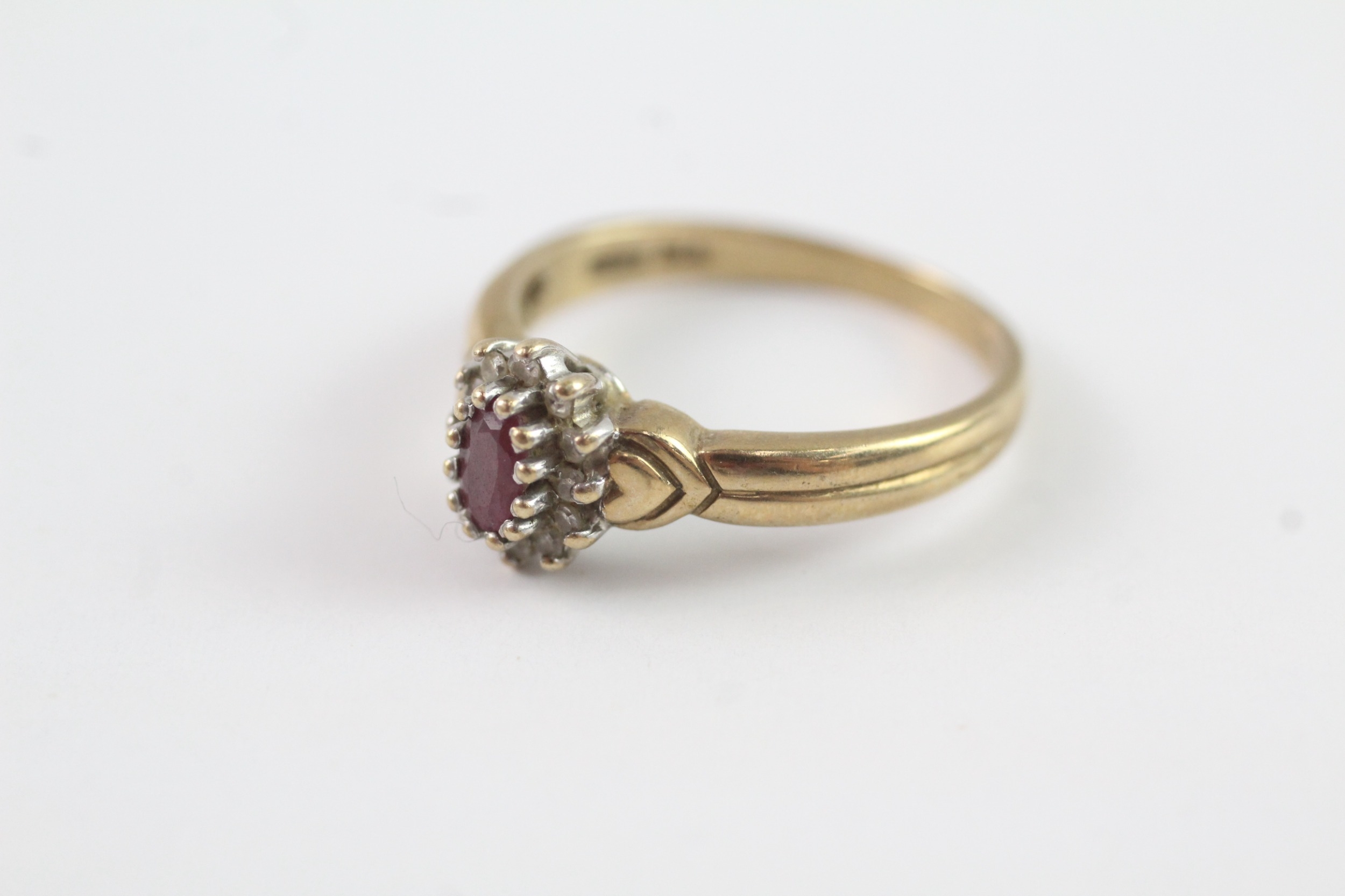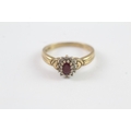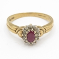 9ct gold ruby and diamond halo ring (2.8g) Size O