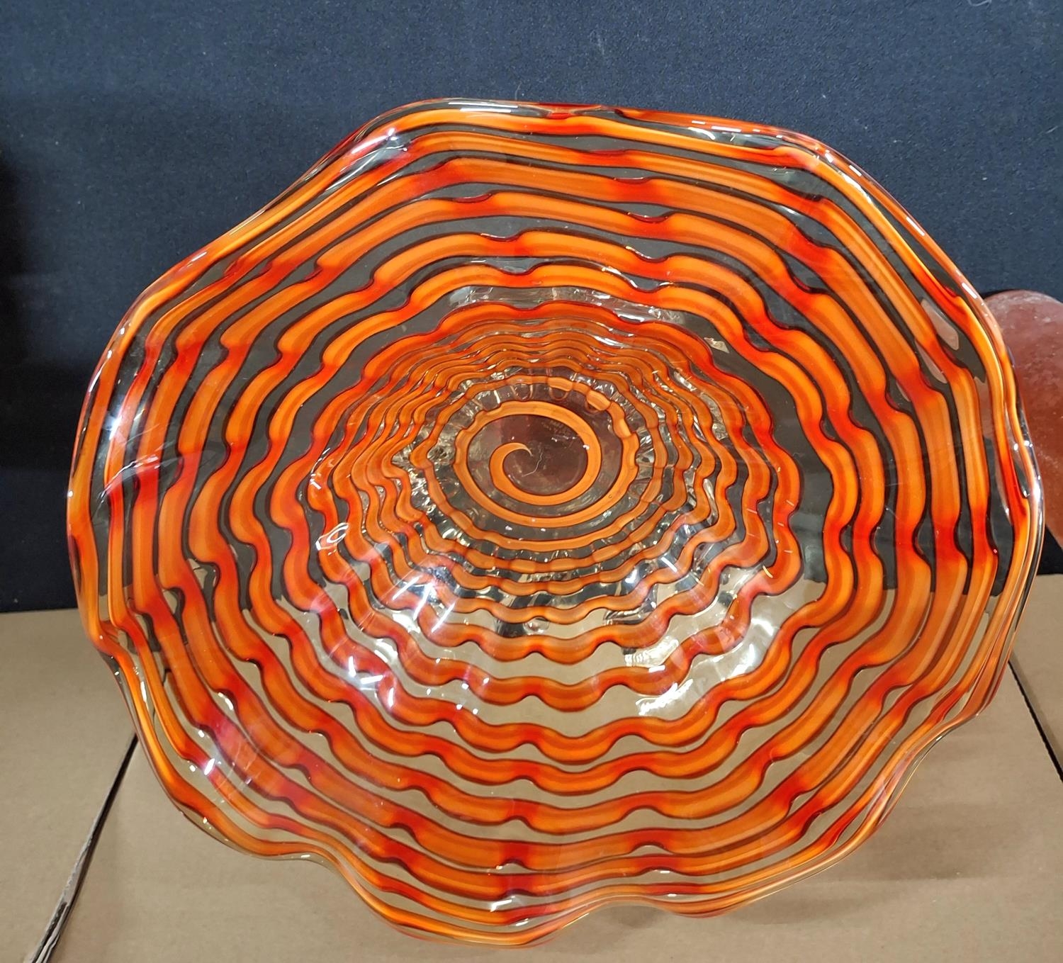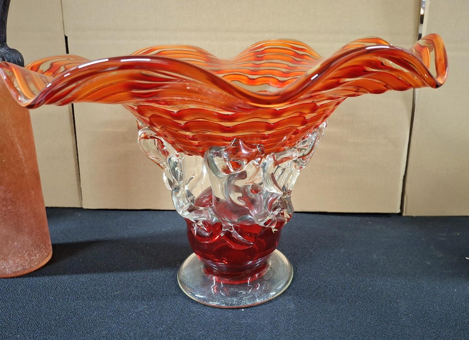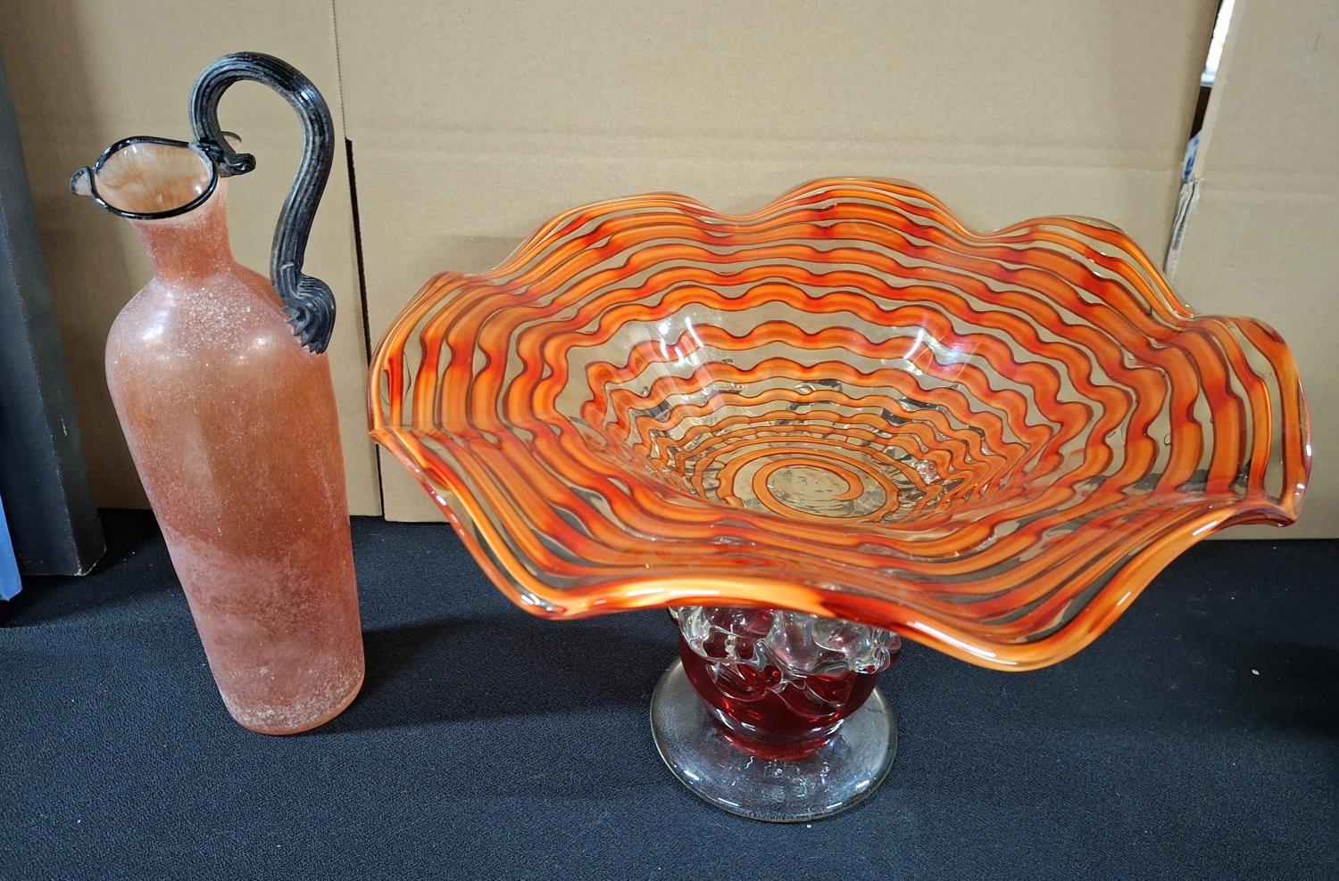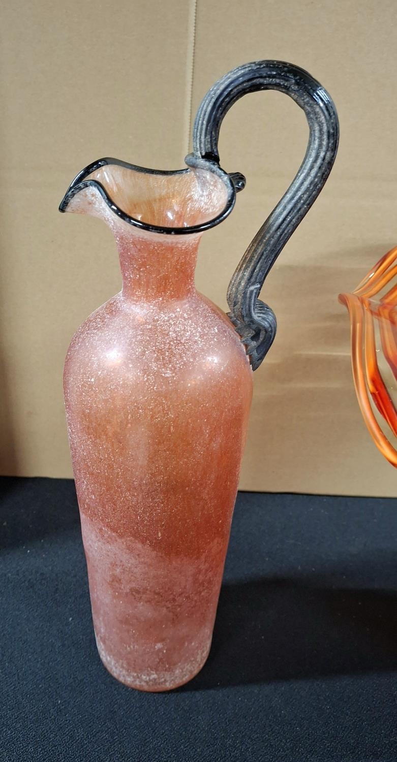 Large orange glass table centre-piece together with an Italian Gambaro & Poggi of Murano glass jug (2)