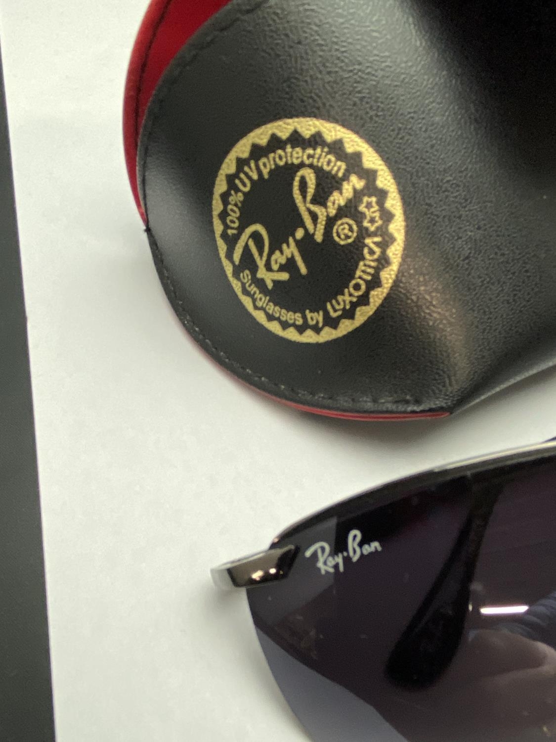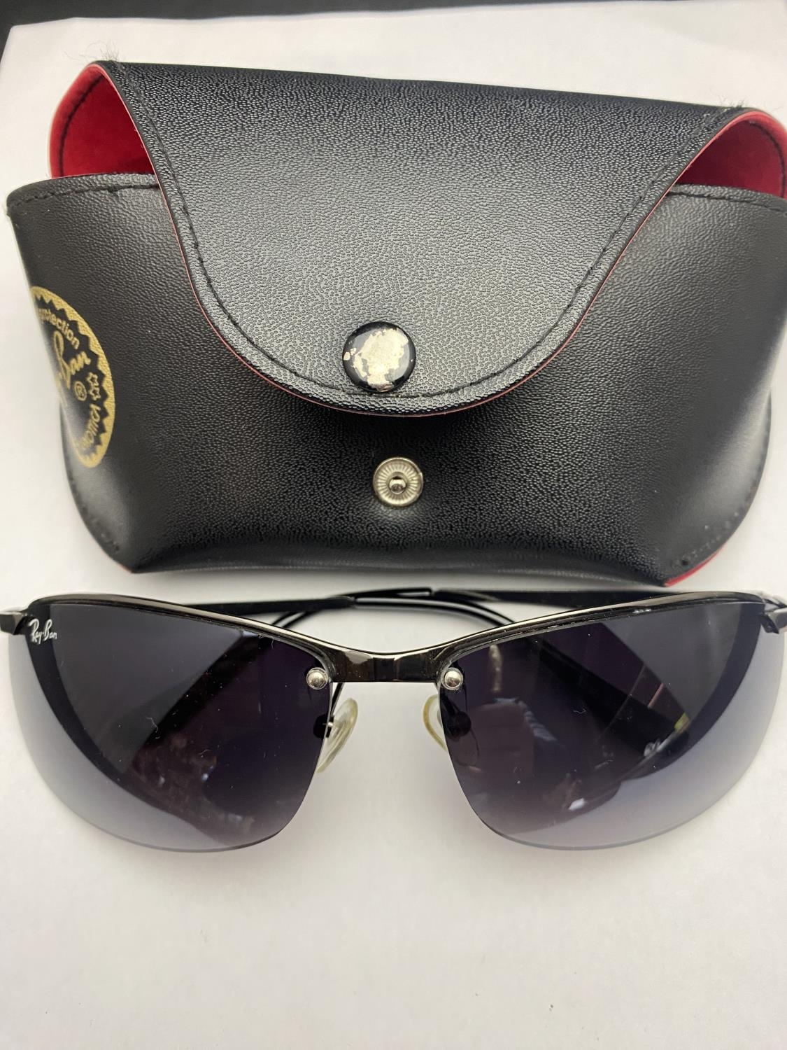 A pair of Ray Ban sunglasses
