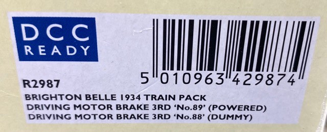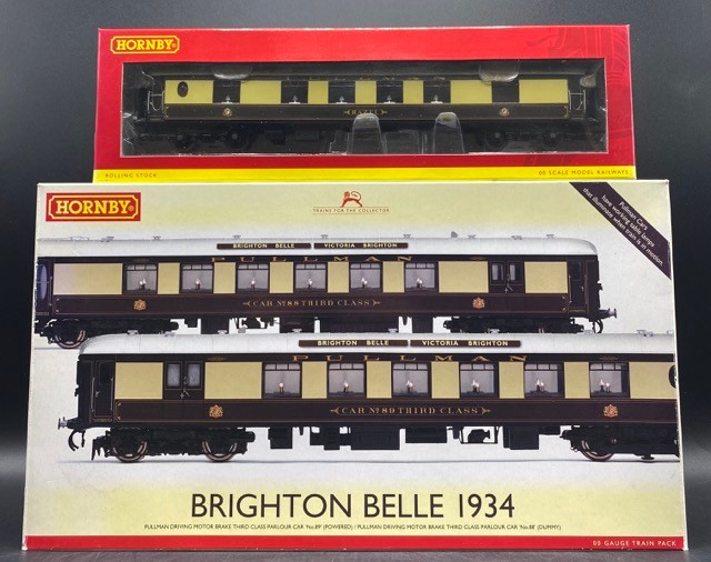 Hornby R2987 Pullman Brighton Belle (1934) 2 Car Pack - includes two Driving Motor Brake Third Parlour Cars "No.89" (Powered) and "No.88" (Dummy) with Hornby R4514 1934 Brighton Belle Car (Pullman Trailer 1st Kitchen) 'Hazel' - working table lamps - Tested Runner