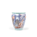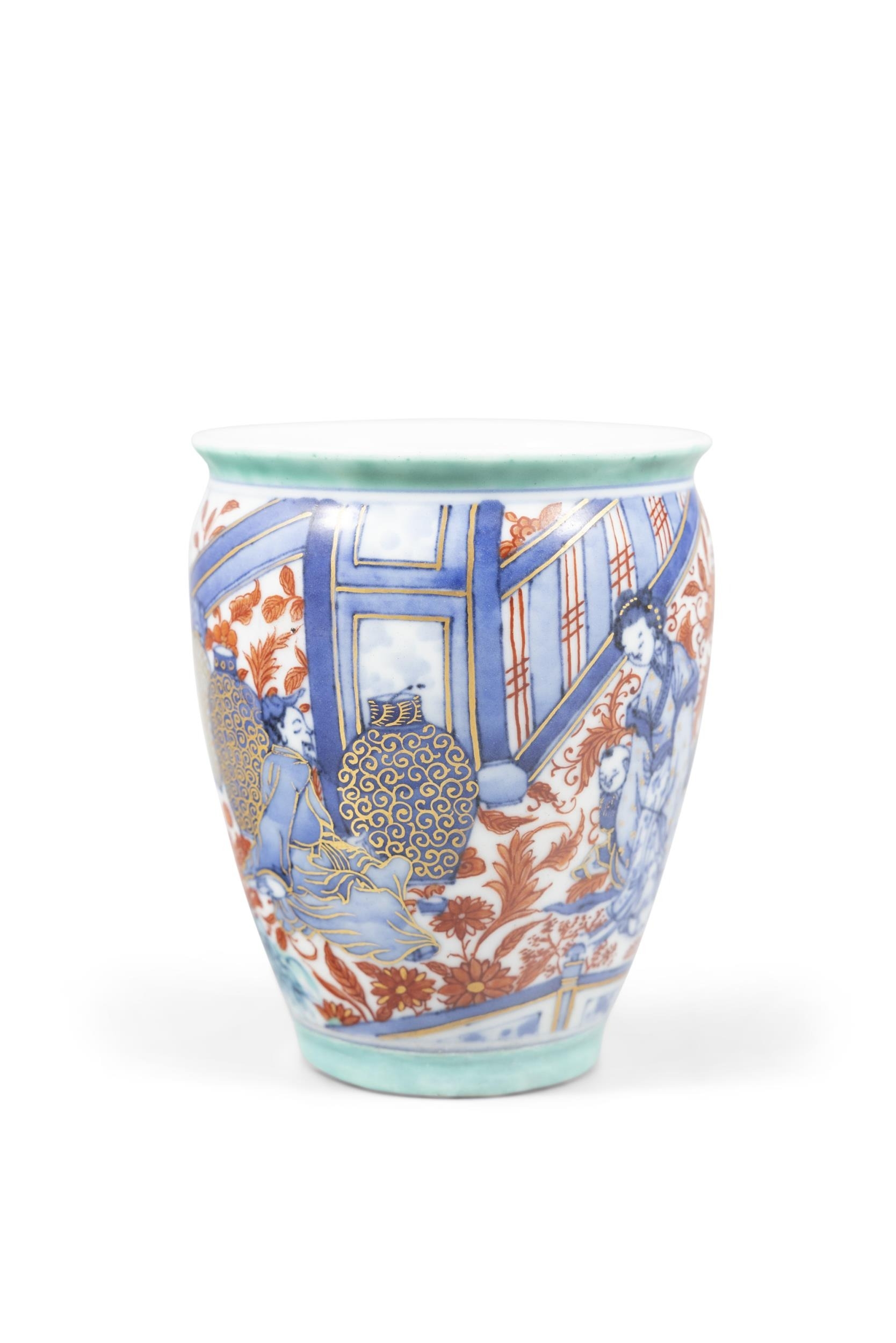 A BLUE AND WHITE DRUNKEN SCHOLAR IN THE GARDEN BRUSH WASH, REPAINTED IN COLOURS IN HOLLAND ??-?? ?????????? China, 17-18th century H: 12cm