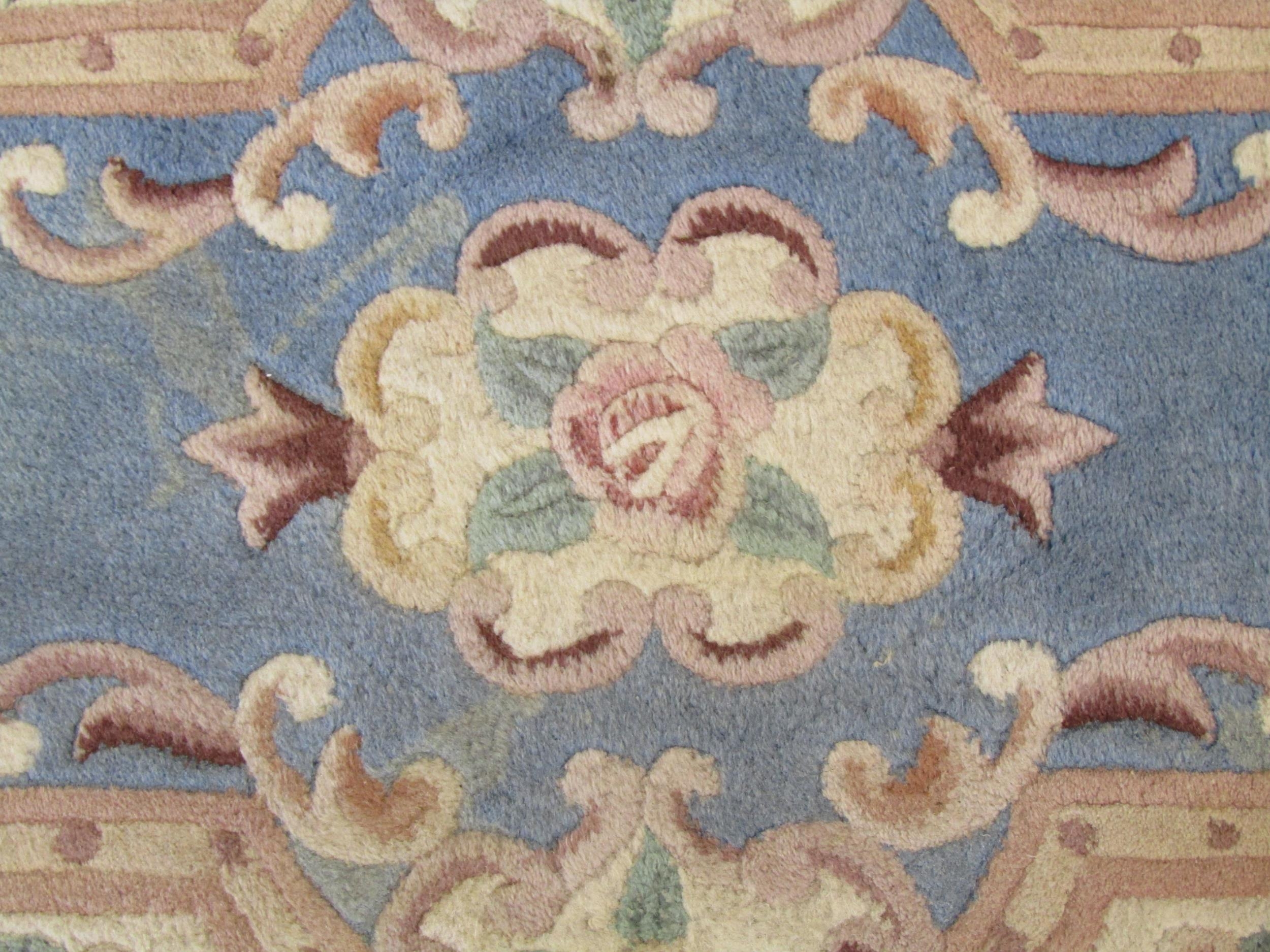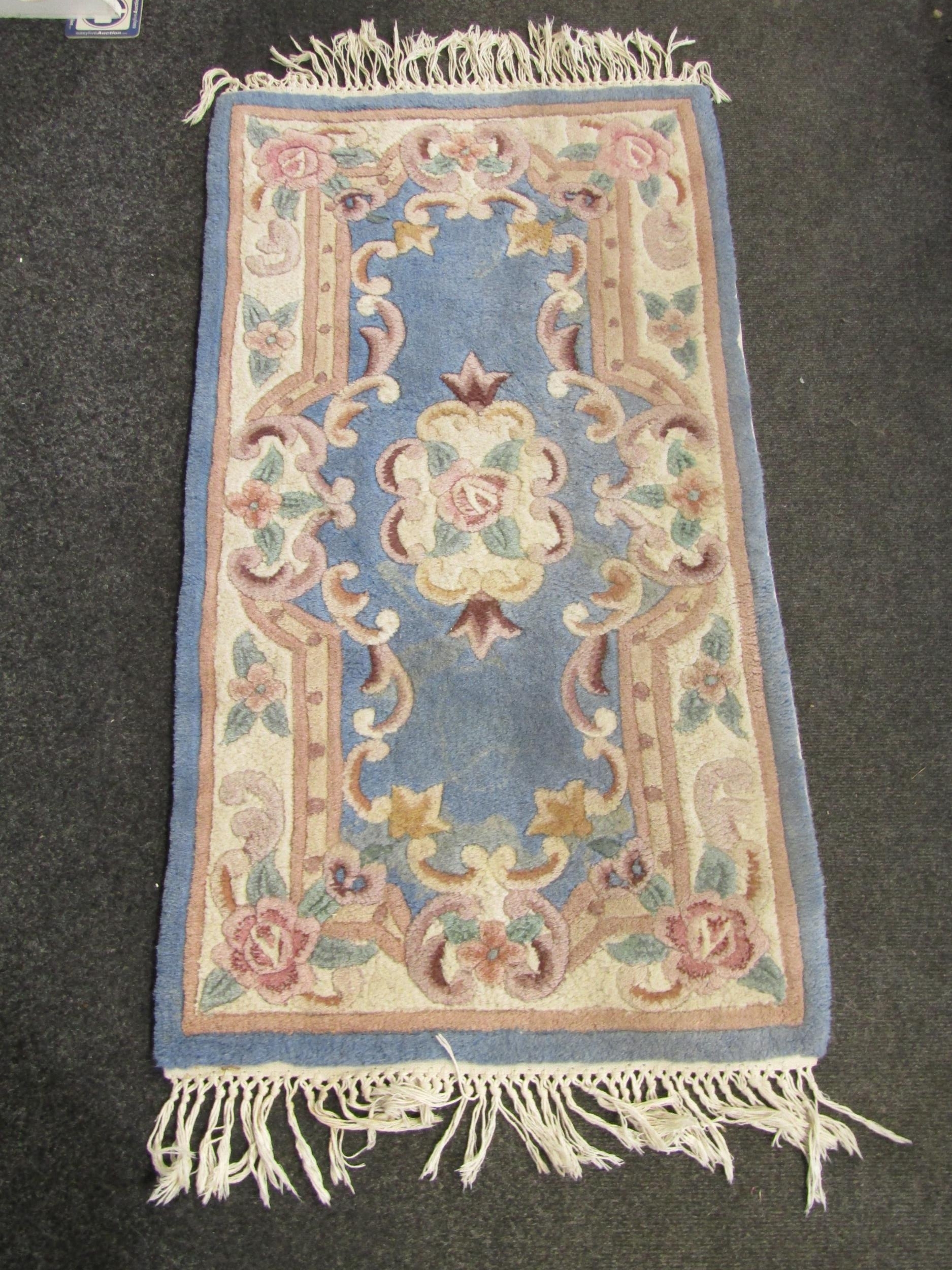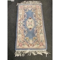 A Chinese blue ground fringed rug, 130cm x 62cm