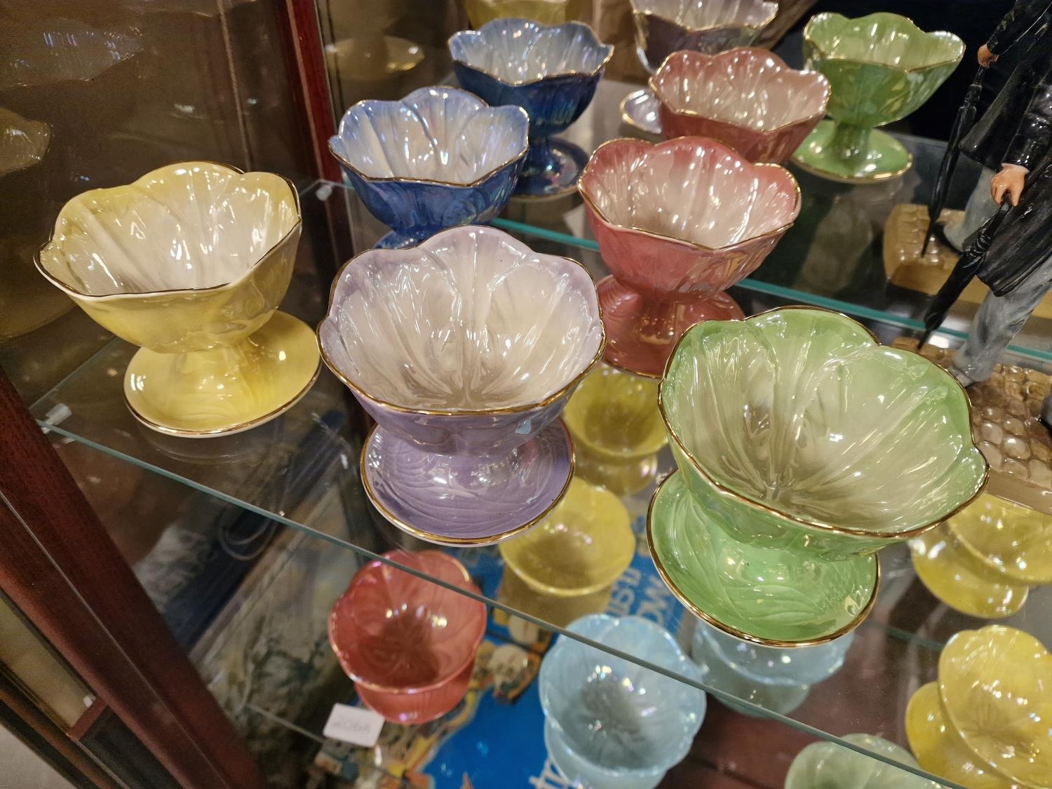 Set of Five Vintage Maling Lustre Harlequin Grapefuit Bowls