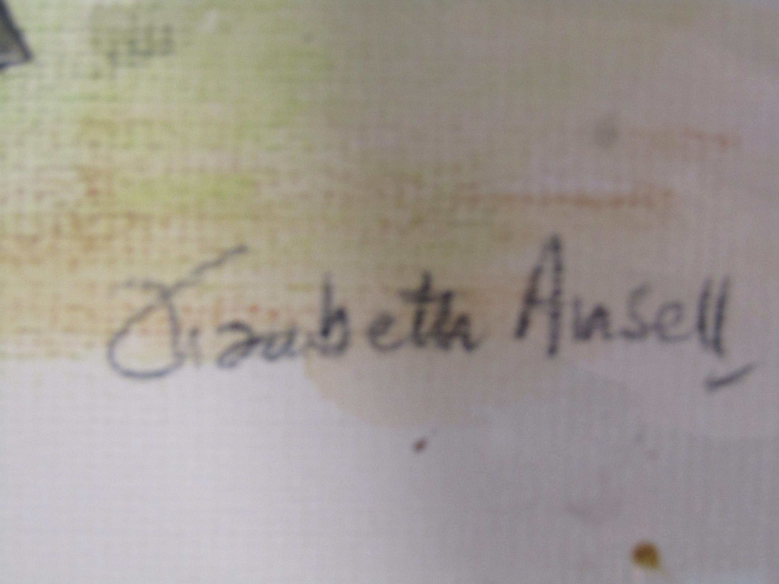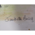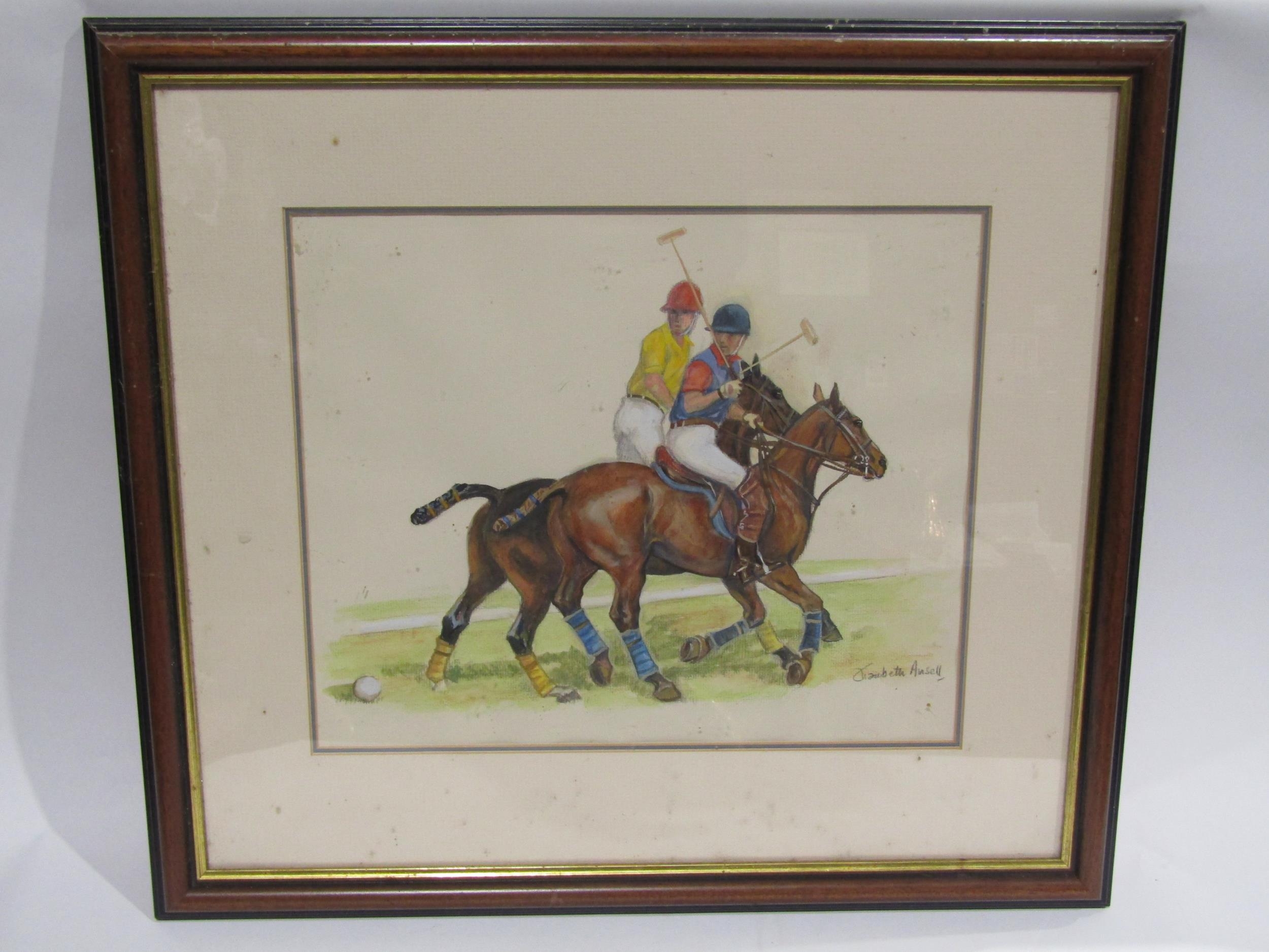 ELIZABETH ANSELL (XX) A framed and glazed mixed media of Polo players and horses. Signed. Image size 27cm x 33cm